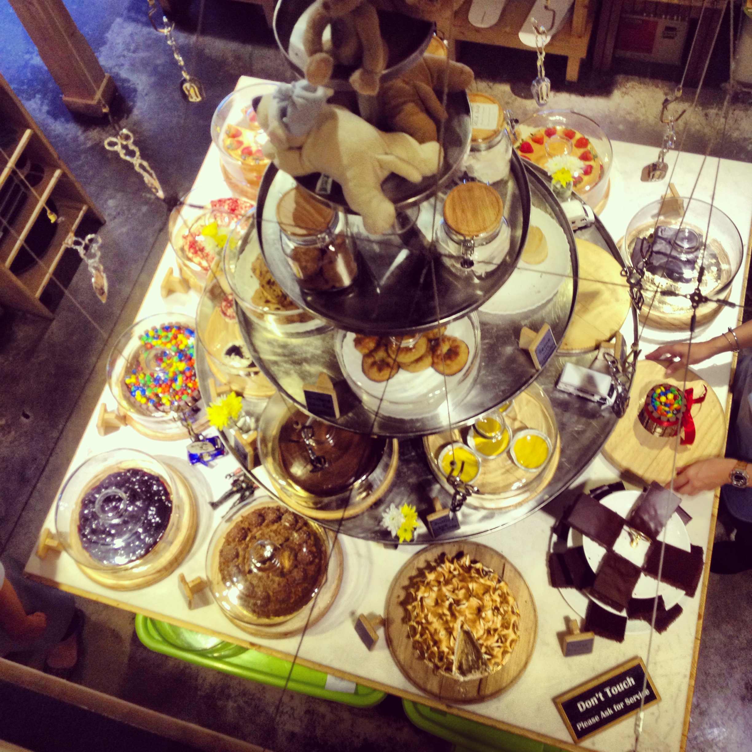 You get to experience a bird’s eye view of the dessert and cakes spread from the attic.