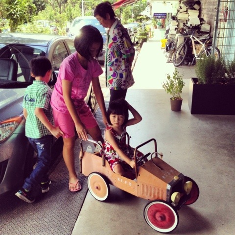 Finding the entrance to the cafe wasn’t easy; we would have missed it if not for the kids and the vintage toy car.