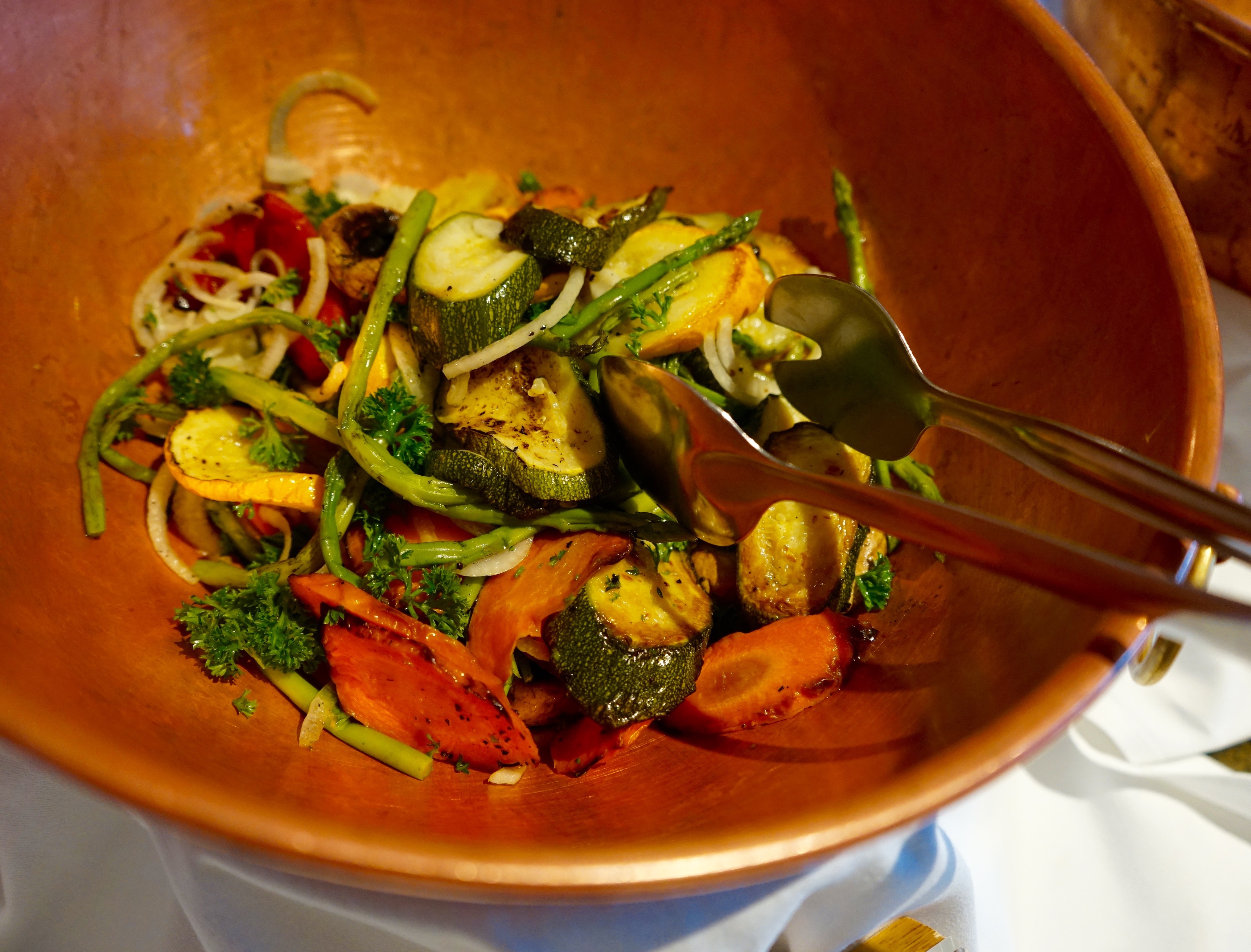 After a few helpings of the cold dishes, we sank our teeth into the moist, succulent flesh of a perfect roasted salmon. I swear I could feel the morsel melt away in my mouth.