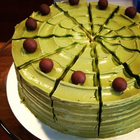 Their Green Tea Almond Praline (Single $7.50, Whole $75.00, Cupcake (by the dozen) $4.50) – an almond praline butter torte is filled and covered with a delicious swiss meringue Macha butter cream looks equally desirable.