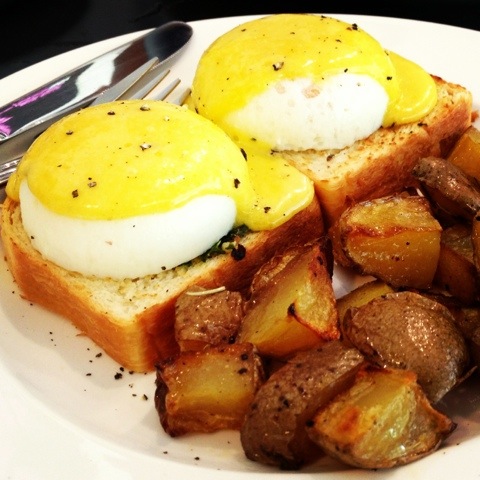 I opted for Towkay Ng’s Egg Benedict ($11.50). Not sure why I kept calling it Towkay Neo, was there a Mediacorp drama with Towkay Neo previously? Anyway, mine was a much smaller breakfast with 2 poached eggs served on a toasted brioche, sauteed spinach, roasted rosemary potatoes and an Italian version of a Hollandaise. The treatment of the eggs was perfect but I am not that excited about Italian Hollandaise. It’s a significantly watered down version of the original hollandaise, doesn’t taste as sinful.