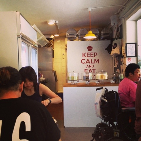 For those who can’t take the blazing noon time heat (like me), you either have to call and reserve your table a few days in advance or keep your fingers cross. There are 2 table tops and a long side table in the air-conditioned area. Thankfully, we managed to secure one of the round tables. Overheard the owner sharing with his other customers that the kitchen behind the ‘Keep Calm’ wall used to be the swimming pools male changing room. What an incredible change of use!