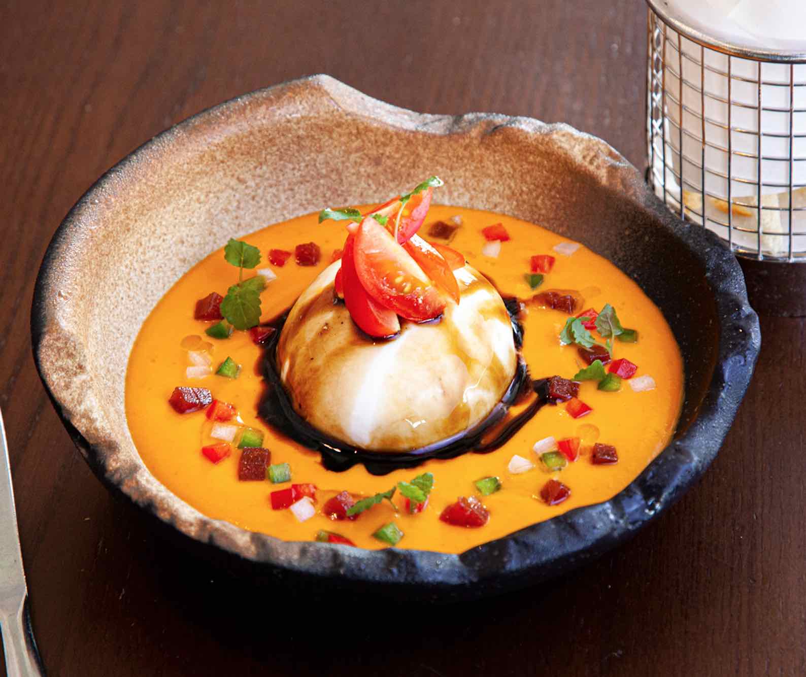 while the Burratina Gazpacho is made with a blend of “ugly” vegetables puree.