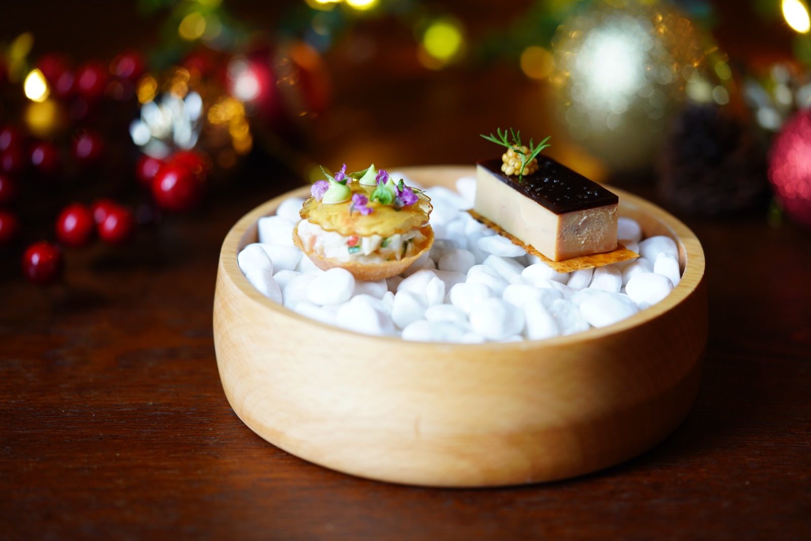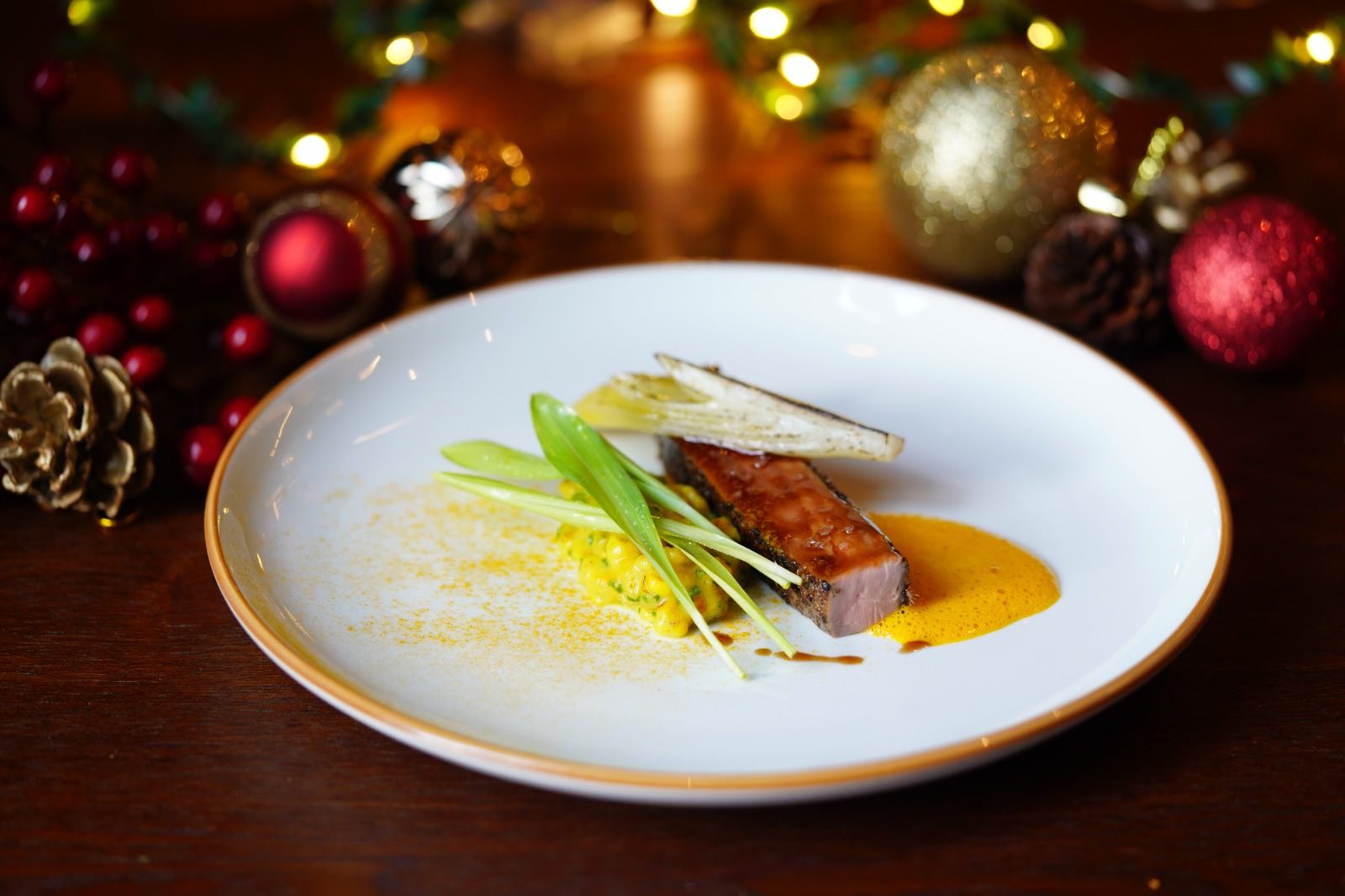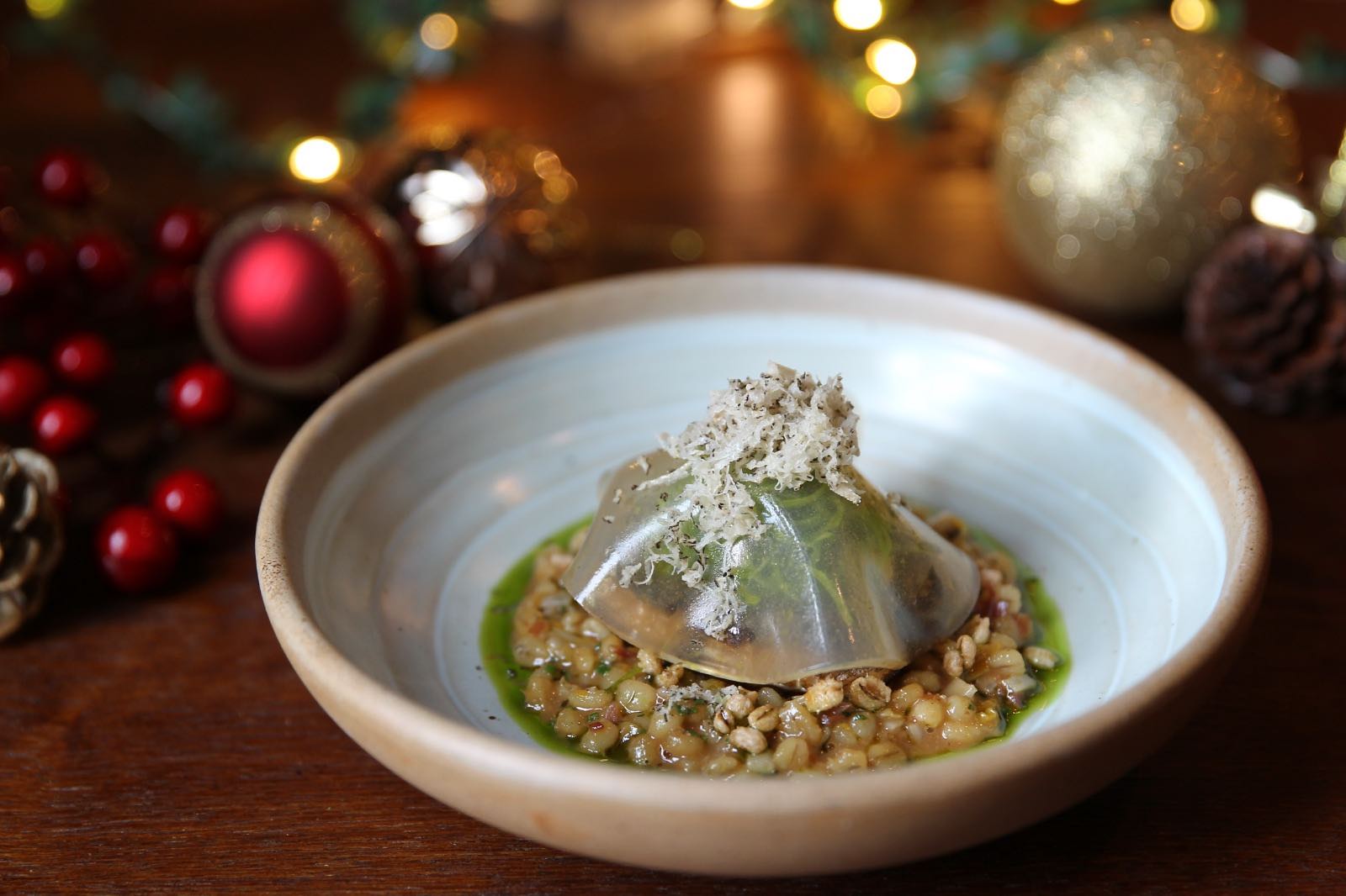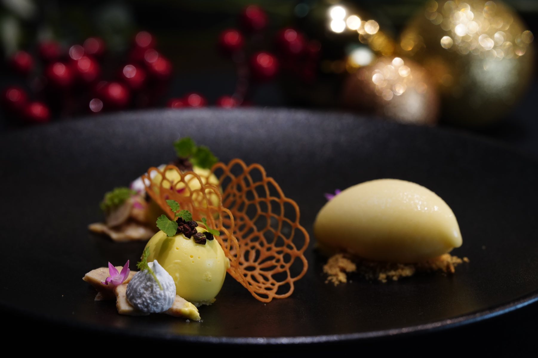 The 5-course festive menu (S$158++) starts with an amuse-bouche of Duck and Passion Fruit Arancini accented with the tang of sheep cheese, and the aromatic trace of black winter truffles.