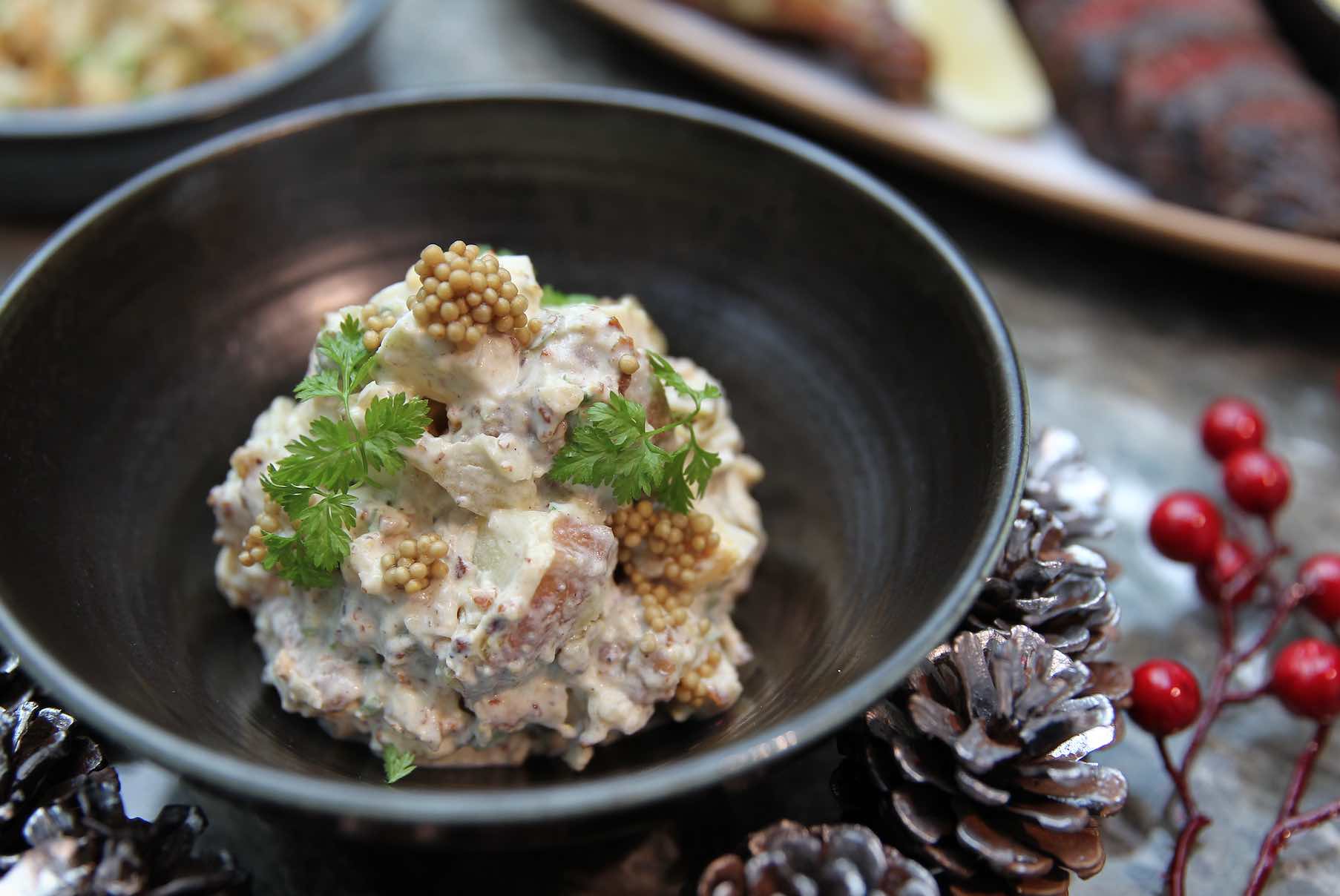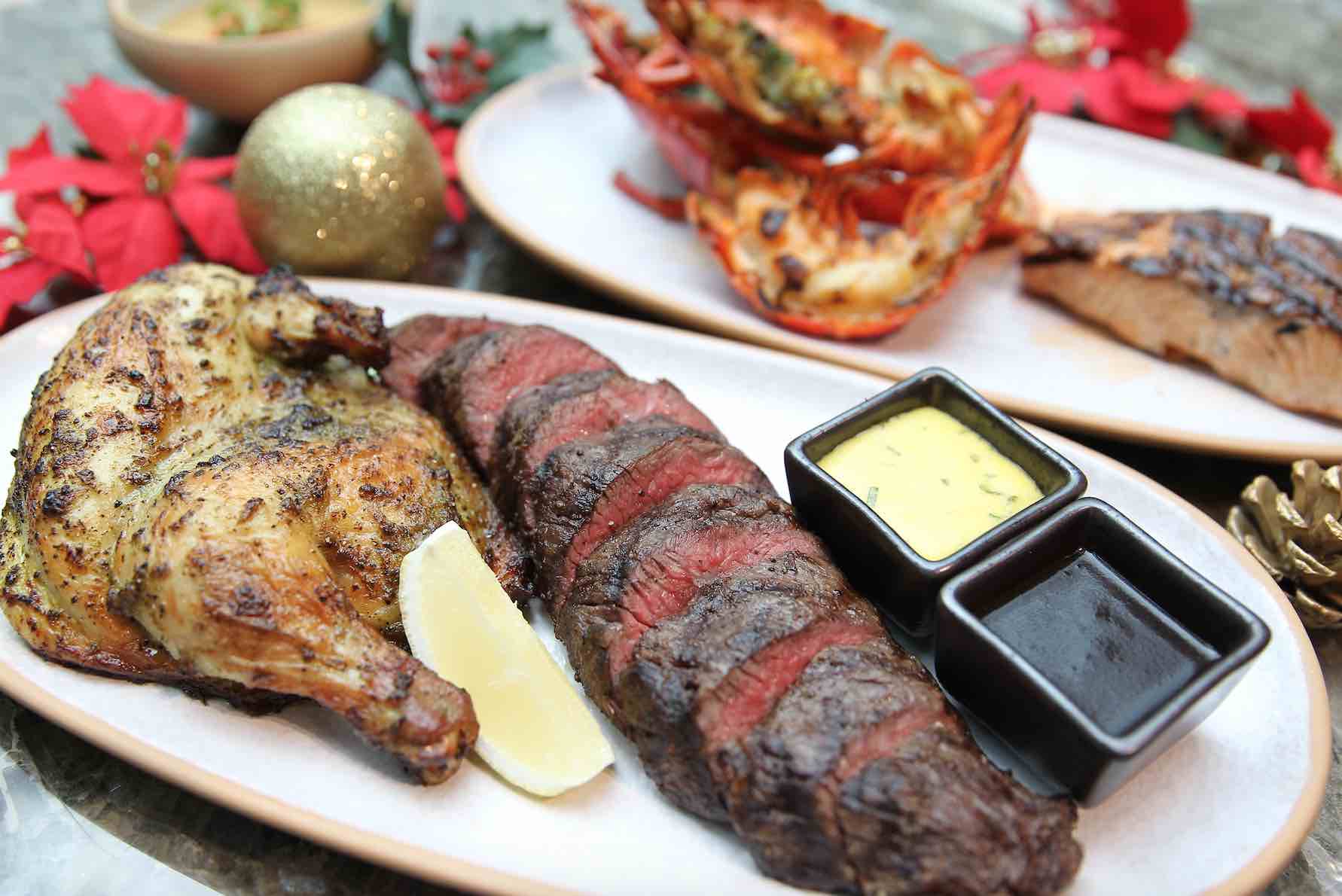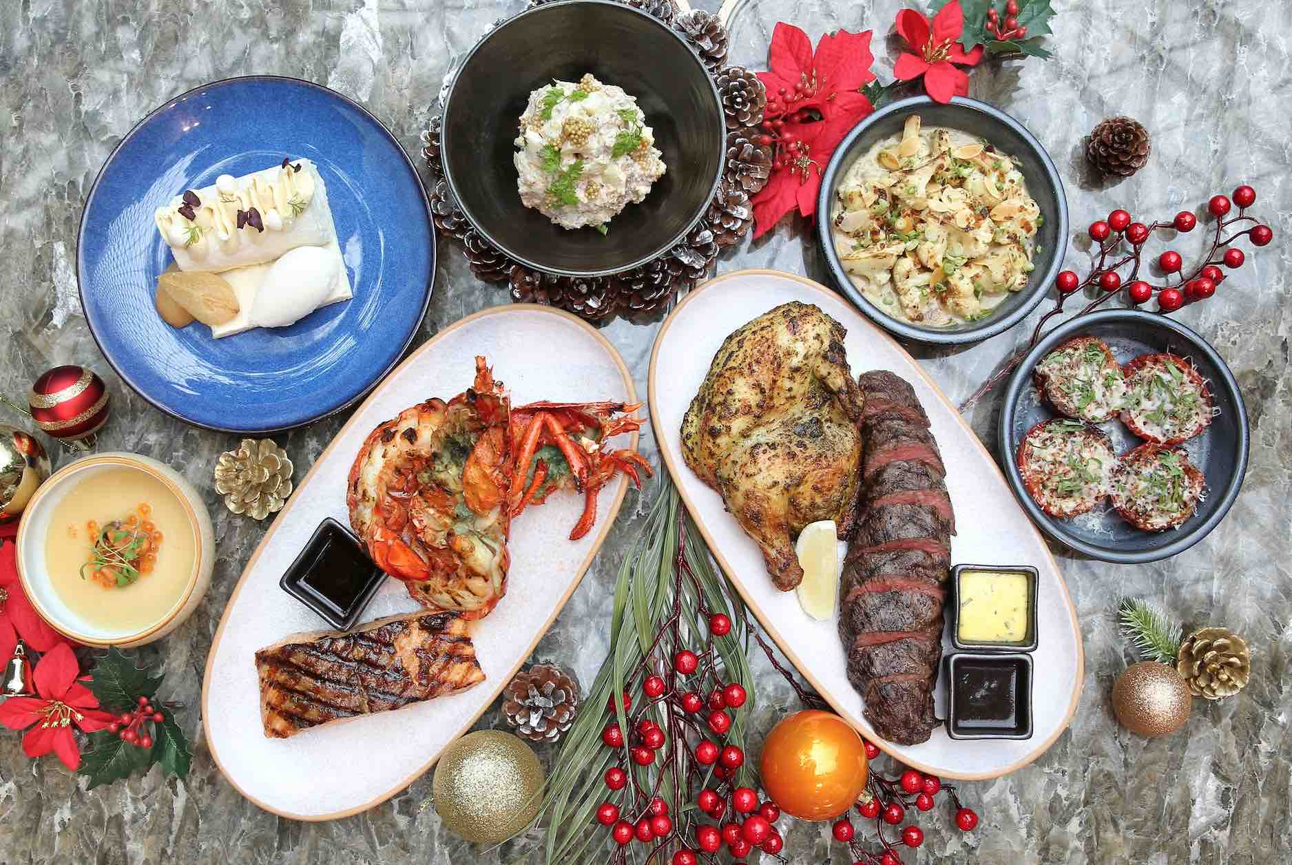 The highlight would be a generous spread of meats like Grilled Boston Lobster, Roasted Lemon Grass Spring Chicken, and Grilled Australian Wagyu Beef Petit Tender. For bigger families, the Festive Feast for four (S$218++) also includes Grilled Atlantic Salmon. These are all accompanied with homemade mirin shoyu sauce, ginger spice jus, and bearnaise sauce; as well as sides like Roasted Tomatoes and Fried Cauliflower with almond flakes and chopped smoked bacon.