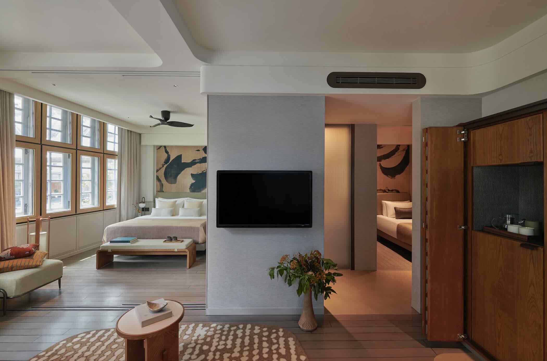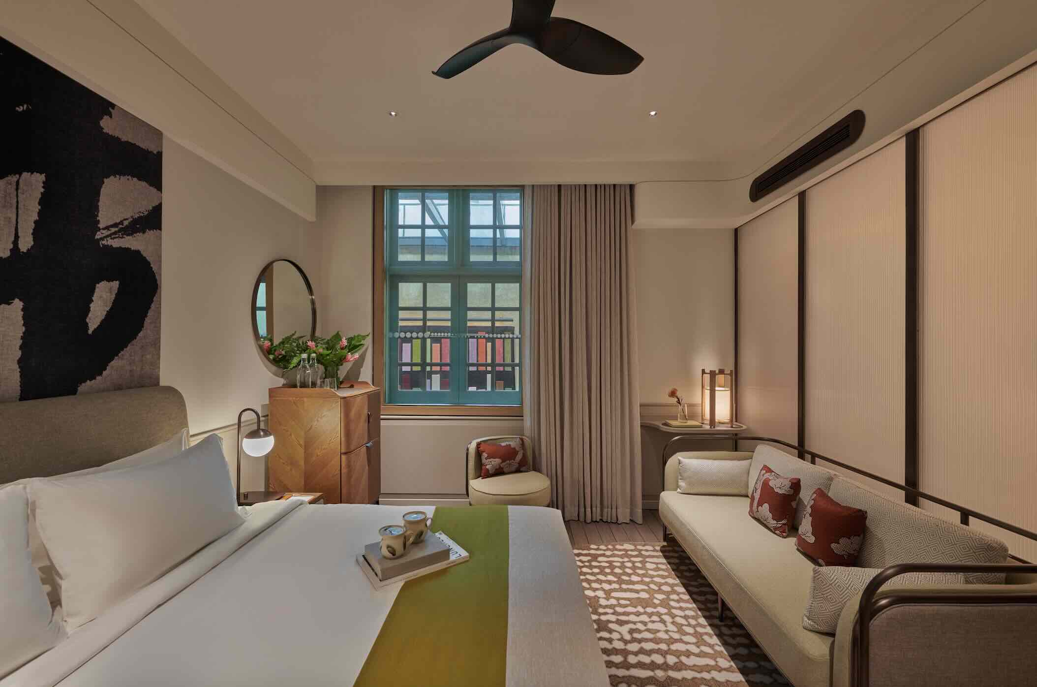 Within, all rooms are thoughtfully designed spaces incorporating old and new. Employing a warm and inviting palette with Asian design influences, all furniture was custom designed by WOHA. The Heritage Wing comprises 26 rooms over the first four floors, including the Heritage 2-Bedroom Suite spanning 55 sqm.