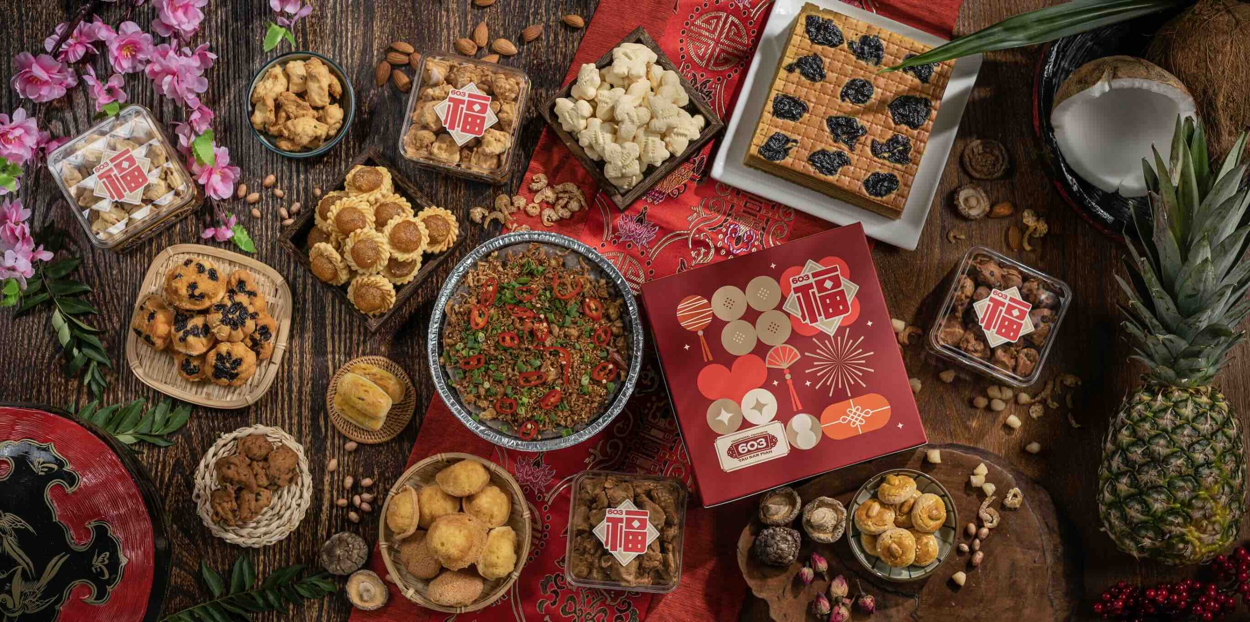 The Signature collection ($60) stars 603 Tau Sar Piah family favourites of Signature Pineapple Balls, Chocolate Chip Cookies, Peanut Cookies, and Kueh Bangkit.