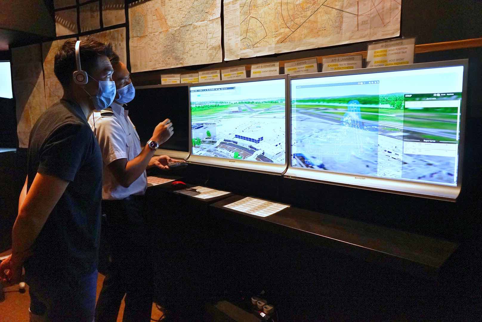 Here we were greeted by a panoramic 3 screens simulator where students get to guide aircraft to and from the active runway for landing and takeoff. As this is a crash course for me, 2 screens were used for an ‘easy’ mode experience.