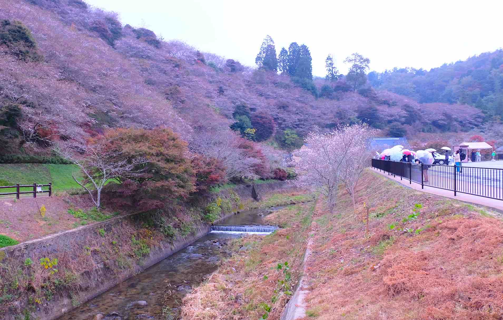 After our fruity lunch, we headed over to Obara to take in the beautiful sights of Sakura in Autumn. Yes, you heard it right. There is no need to squeeze with hordes of tourism in spring when you can see in autumn at Aichi Prefecture. It was lovely seeing a large patch of pink hue over the browning trees. It was a pity that we could not venture out too far as it was raining at the time of our visit. The scenery reminded me of Minoo park in Osaka.