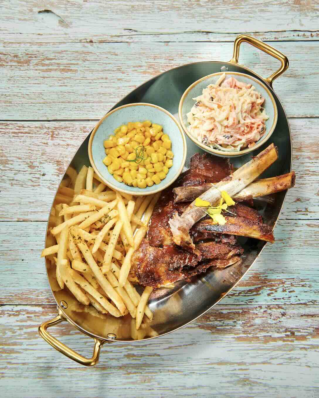 Start with the Cajun Blackened Barramundi, a perfectly spiced fillet that balances charred edges with tender, flaky meat. Or dive into a showstopper: the 120-day Grain Fed Angus Beef Short Ribs, smoked tableside for maximum sensory impact. The “Bone drop” BBQ Iberico Prime Ribs are just as unforgettable—served with crunchy coleslaw and tangy pineapple salsa for that sweet, smoky finish.