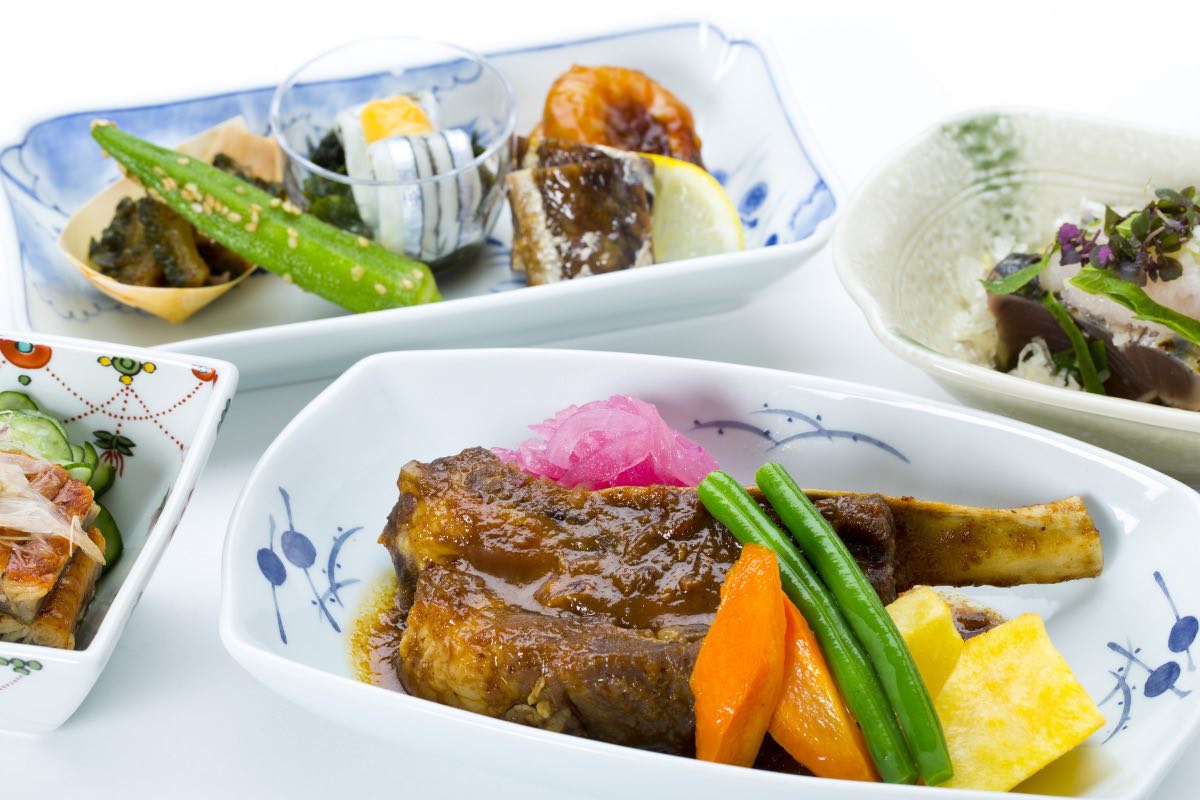 International Business Class flights will feature Hinai- jidori chicken – revered as one of Japan’s three tastiest local chicken brands, served in the classic Akita specialty of kiritanpo nabe (skewered mashed rice hot pot). In October, customers at the “DINING h” restaurant inside the ANA SUITE LOUNGE at Haneda Airport can enjoy beef filet and foie gras sauté with “Fukura” French toast in blueberry sauce. Fukura refers to a spicy French toast version of cake made from Akita tofu, which pairs immaculately with the meat sauté and vegetable side.