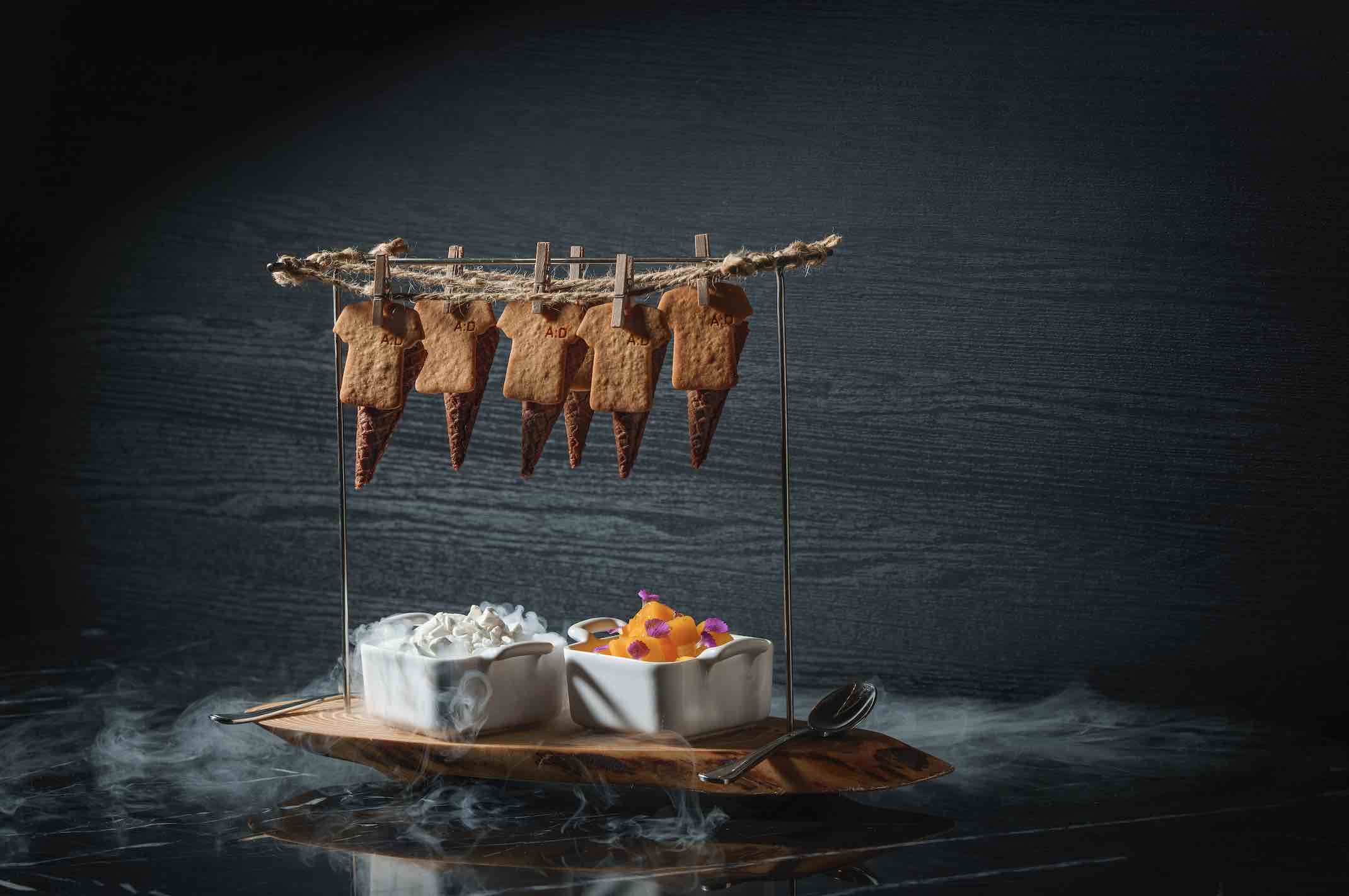 Desserts are also a special affair. A perfect complement for cocktails is the Chilli Cocoa Waffle (S$18), paired with chilli in a crispy cornet for a delightfully spicy crunch. For a tropical burst of flavour, order the Tropical Fruits (S$16) that consists of passion fruit, coconut, banana and pineapple.