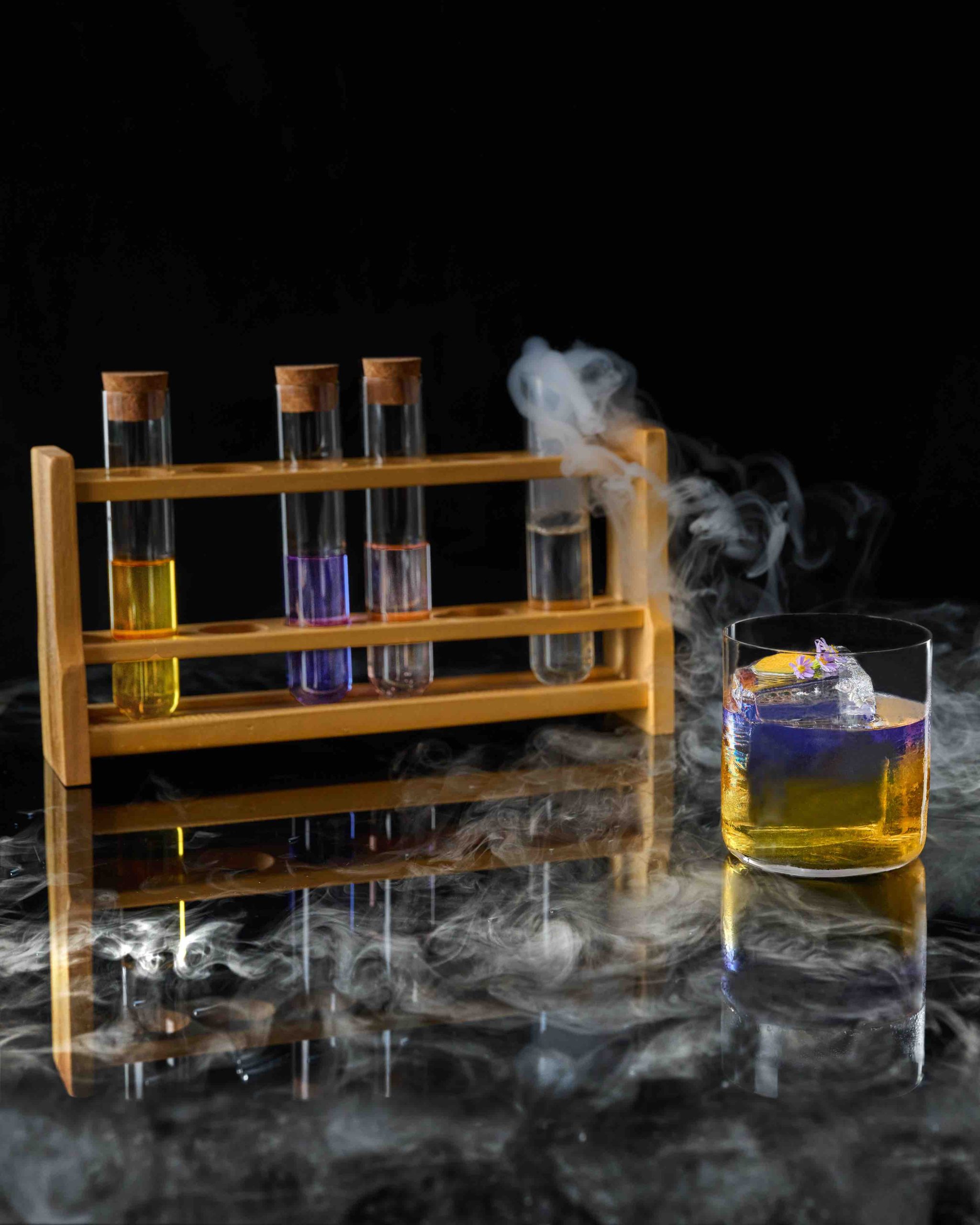 What Do You Want?! (S$25) is a one-of-a-kind cocktail that offers a playful twist on the Italian classic Negroni Sbagliato, which was originally created by mistake. This build-it-yourself concoction comes with three test tubes containing butterfly pea-infused rum, sakura vermouth, suze and pear cordial. The vibrant colours and unique flavours of each ingredient blend together for a visually stunning and scientifically scintillating drink.