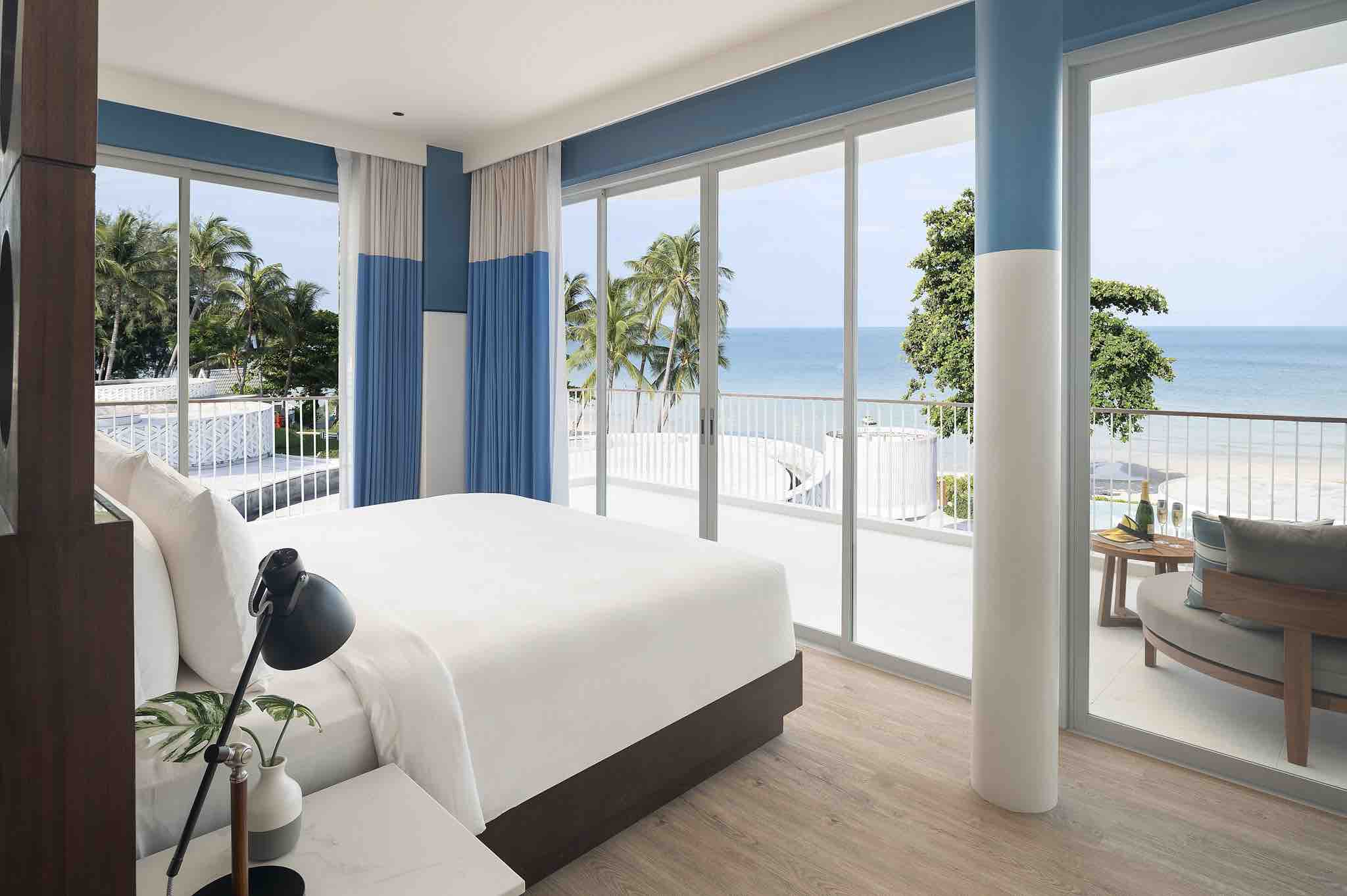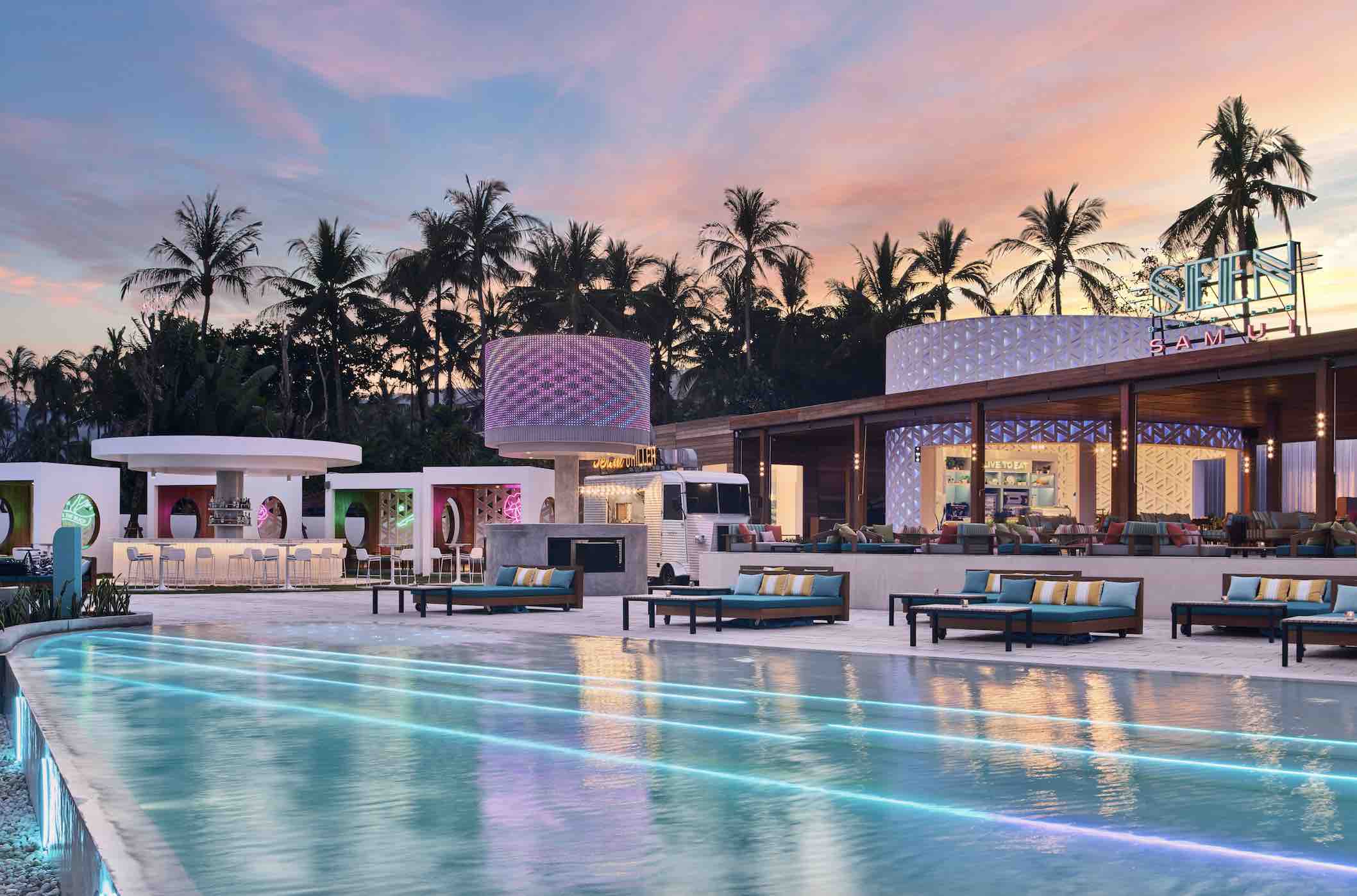Sitting mere metres away from the sumptuous stretch of silky white sand, the retro glam spot offers access to the best sunsets, dining, entertainment and people-watching on the island. SEEN Beach Club Samui, the hard-hitting party central next door, throws epic pool parties with top DJs and world-class entertainment on tap. The resort’s social swimming pool feels like a hopping bar, with snug cabanas and a mixology station that moonlights as a check-in area for folks who just want to get on with it.