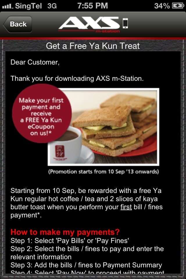 Last but not least, I got rewarded with a free Ya Kun Treat just by making my first transaction! Limited to only the 1st 50,000 customers so do act fast!