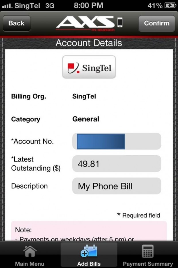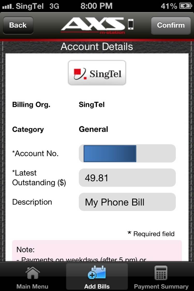 It offers the same straightforward, idiot-proof payment interface. I love how the app is able to auto populate the payment amount immediately after I keyed in my Account Number. I also like the fact that I can get to put a description to each particular payment. This will allow quick informative reference at the bill reference section of the app.