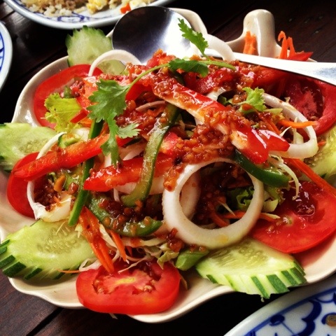 First to arrive on our table was Thod Man (90 Baht). These traditional Thai Fish Cakes were creatively seasoned with curry paste and blended with fresh beans before deep fried until golden brown. They tasted pretty amazing with the accompanying sauce.