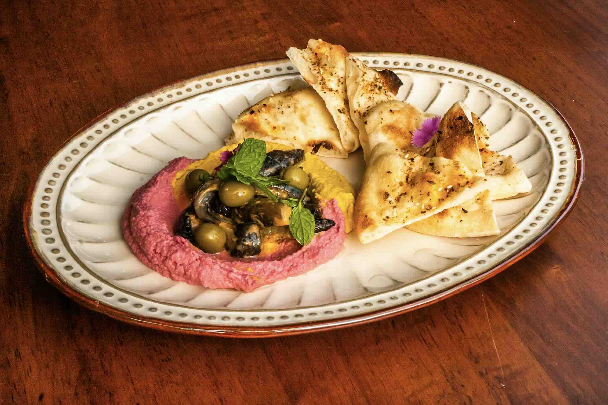 Gold and Purple Hummus (Middle-Eastern twist)