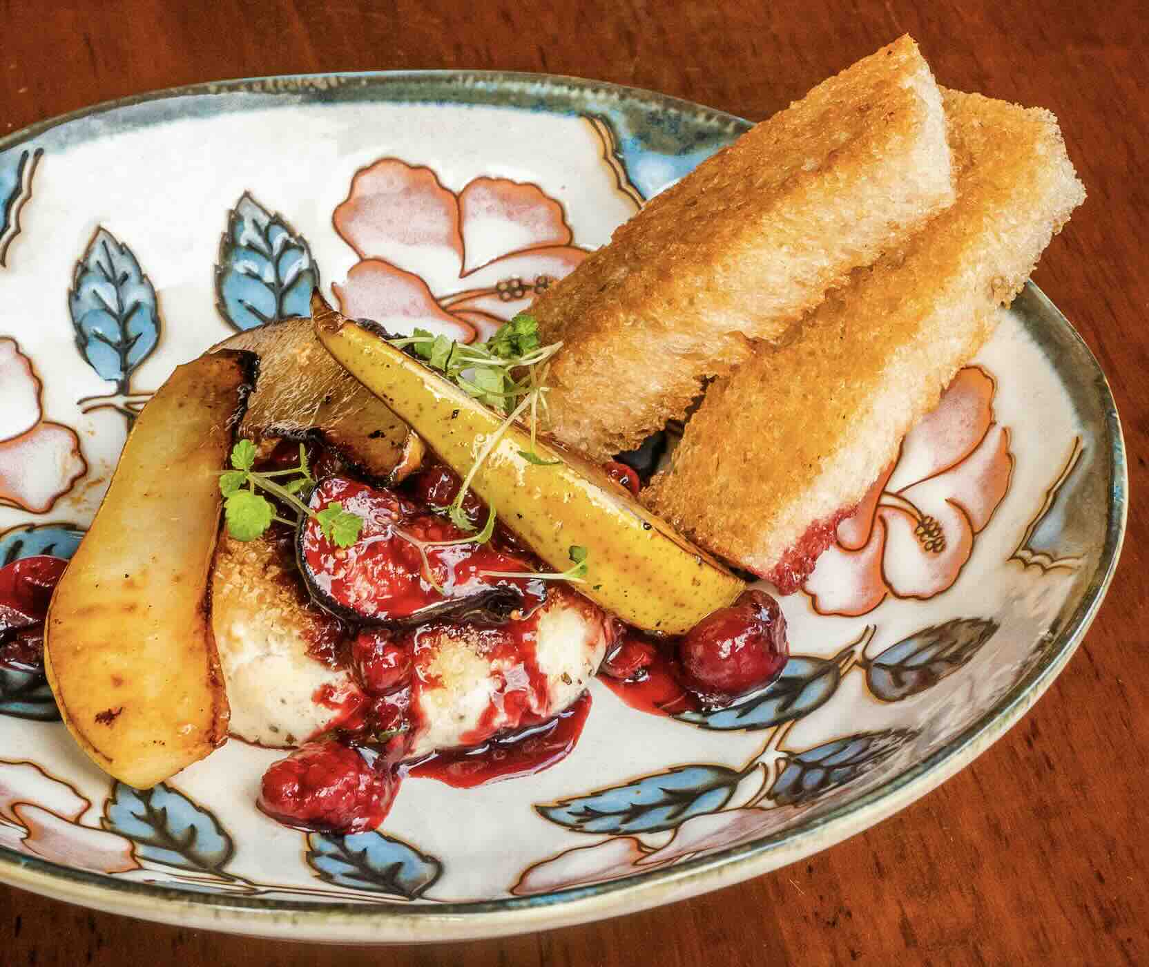 Warm French Goat Cheese with Red wine-berry compote (Mediterranean twist)