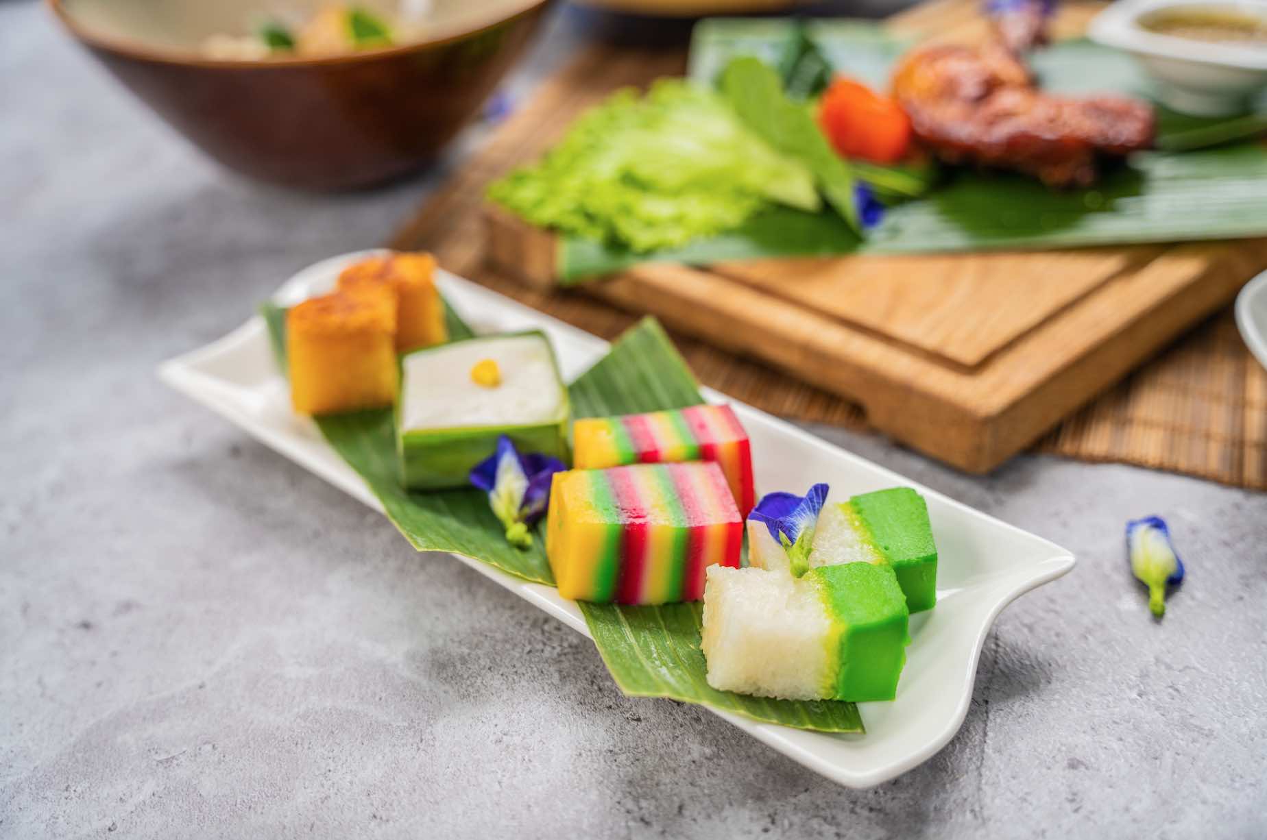 Leave room for the Thai Dessert Platter. Included in the indulgent selection of desserts is Tako, a layered Thai coconut pudding, Thai Sago Coconut balls covered with freshly grated coconut, and Koswee, a Singapore-style Nonya dessert made with gula melaka and rice flour, coated in desiccated coconut.