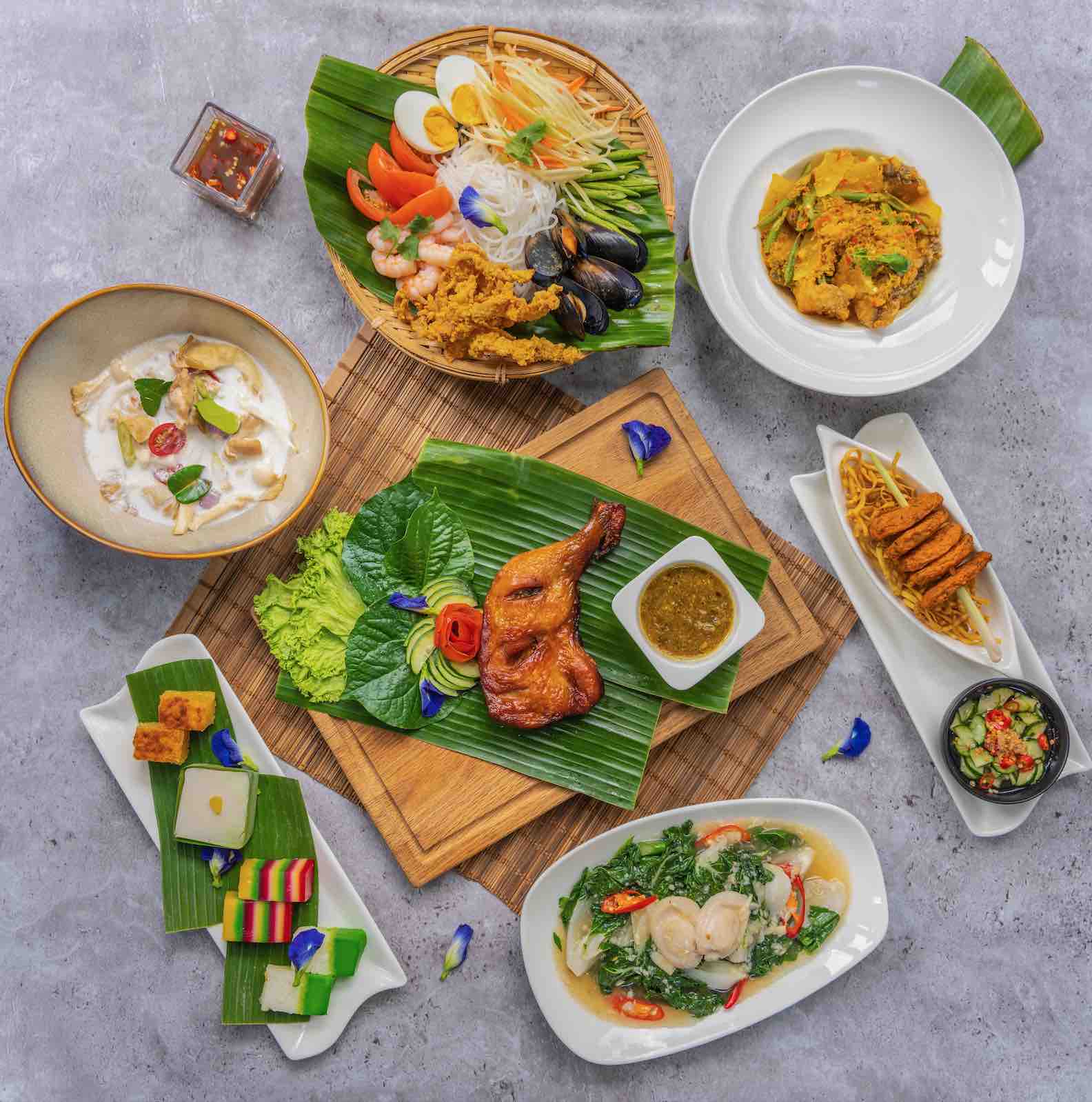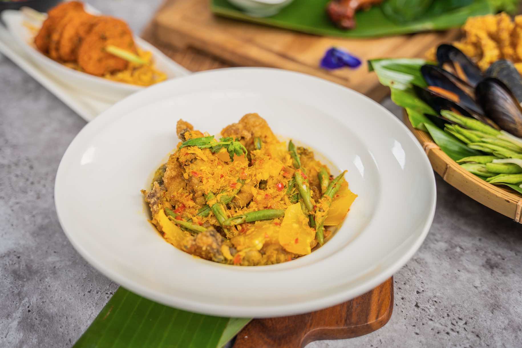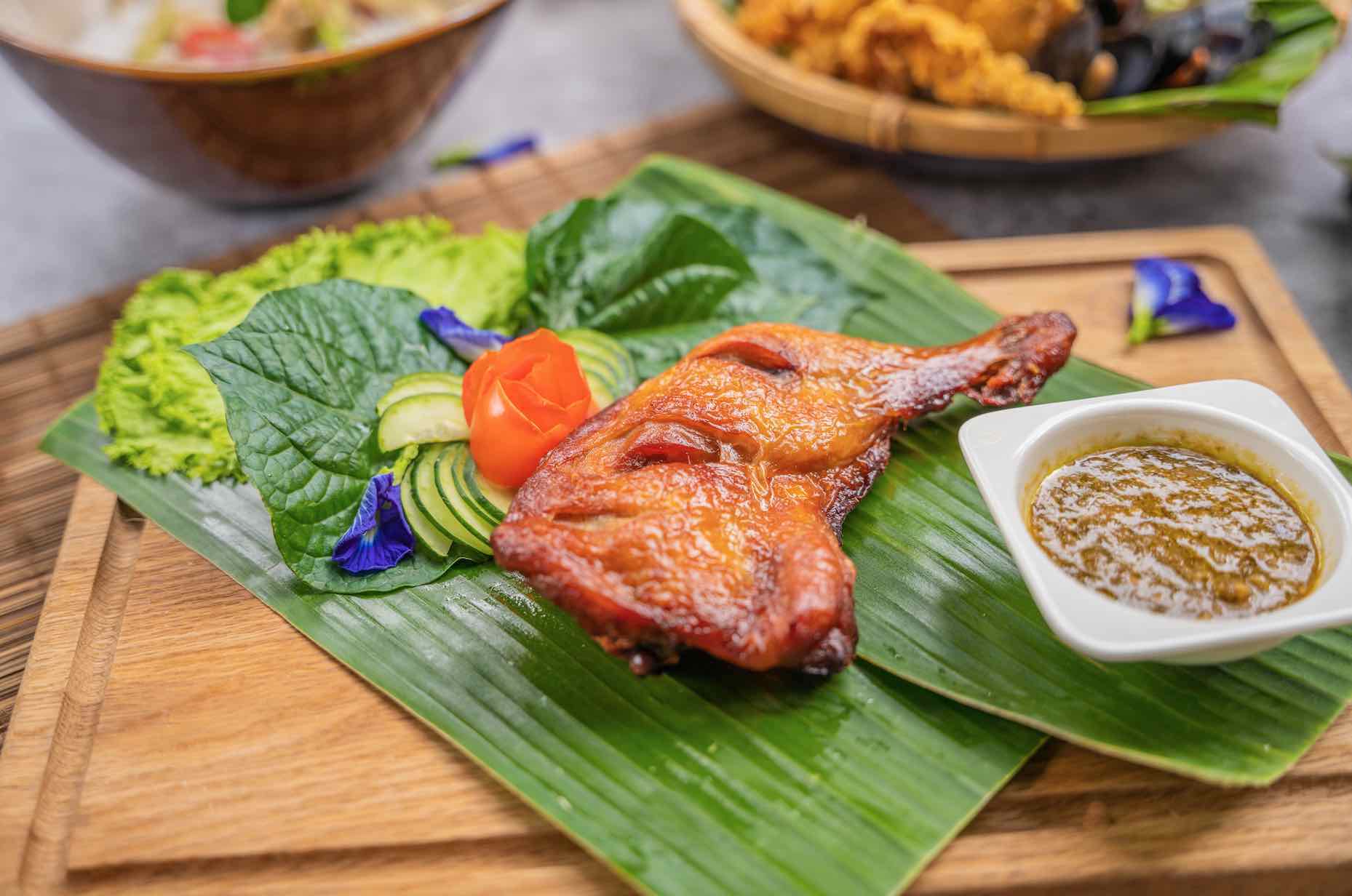 Thereafter, devour the menu’s hearty mains, paired best with steamed jasmine rice. The Sun-Dried Chicken with Green Chilli Dip features marinated chicken that is placed in a combi oven to mimic the traditional sun-drying style typically used in Thai kampungs. The crispy fried chicken is accompanied by a refreshing green chilli dip finished with a touch of lime juice.