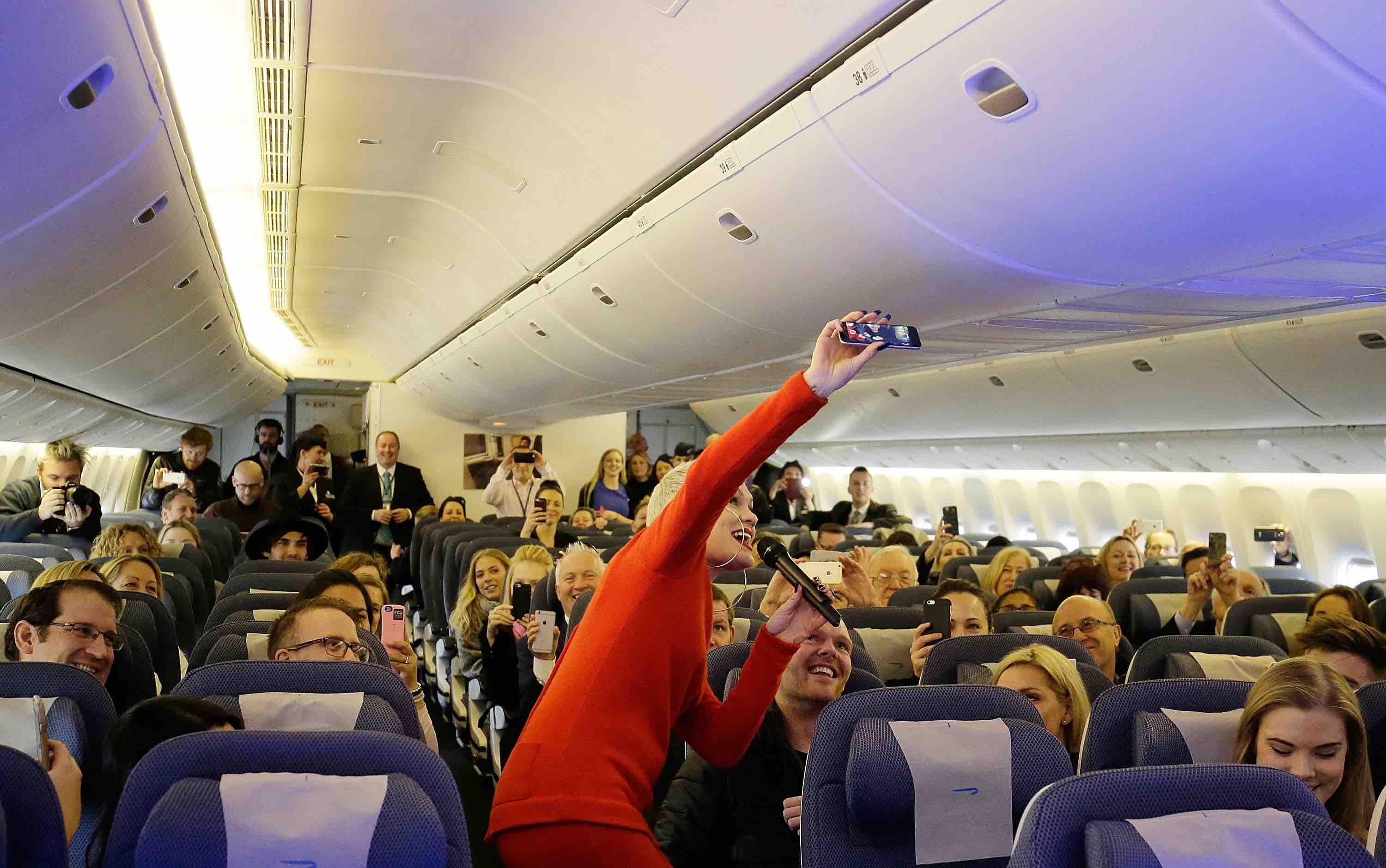 Speaking after the gig, London-born singer Jessie said: “It might be freezing here but summer has arrived back home in Britain, and when the sun’s out there’s no better time to visit London. Gardens and parks are in full bloom and everybody’s in a fantastic mood – there’s a real unique buzz about the place.” Discussing her performance on-board, Jessie added: “This is the first time I’ve ever sung on-board an aeroplane and it was brilliant. The audience really got into it and the cabin actually had terrific acoustics. Maybe next time we’ll take off!