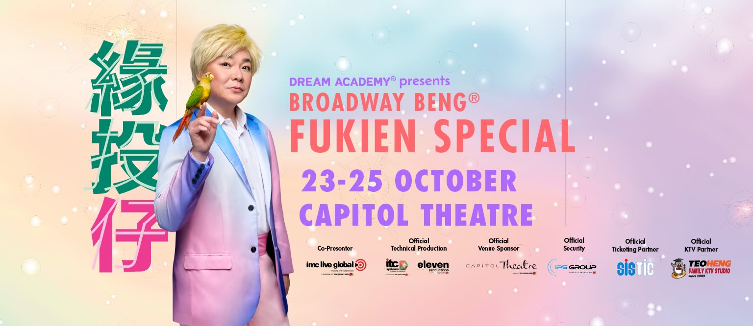 Get ready for a side-splitting, Hokkien-filled extravaganza as Dream Academy brings back the beloved Sebastian Tan, aka Broadway Beng, in his latest show, Broadway Beng® Fukien Special. Running from 23 to 25 October 2024 at the Capitol Theatre, this highly anticipated 9th instalment promises to be a hilarious celebration of Hokkien culture with a Broadway twist. Expect witty humour, satirical skits, reimagined Hokkien classics, live music, and elaborate costumes — all delivered in true Dream Academy style.