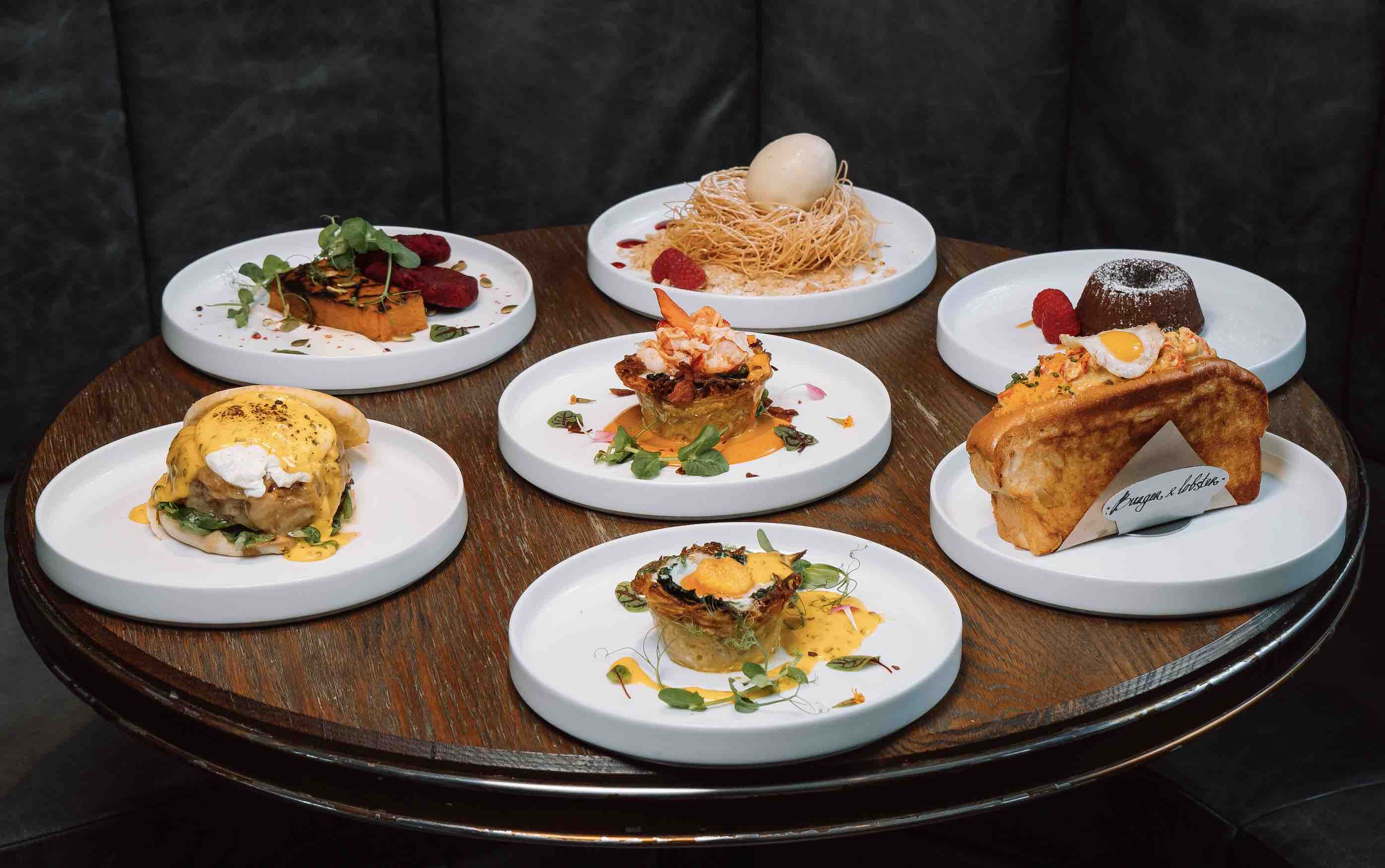 At Raffles Hotel, kick-start the hearty mid-morning indulgence with a choice of two starters: Egg in Nest ($12++) comes as a baked egg in a golden potato nest served with a classic bearnaise sauce and micro-cress salad, while the baked Lobster Quiche ($16++) is served with a bisque hollandaise sauce and micro-cress salad in a golden potato nest.