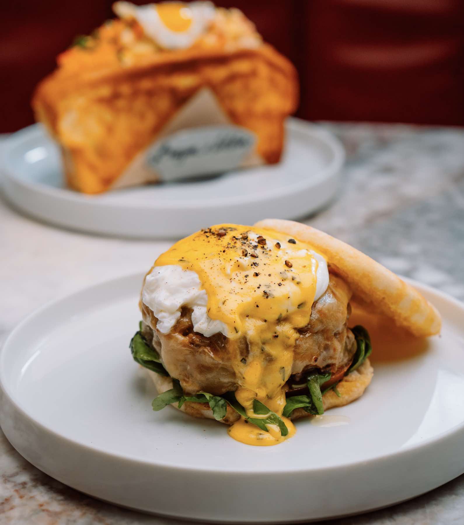 For mains, the Eggy Lobster Roll ($28++), and Beetroot Rissoles & Butternut Squash steak ($18++) are available at Raffles Hotel as well as the Benedict Burger ($18++), made with black Angus grilled patty on a toasted cornmeal muffin with bearnaise sauce, watercress salad, beef tomato, confit onion jam and aged cheddar, served with a perfectly poached egg and bearnaise sauce atop.