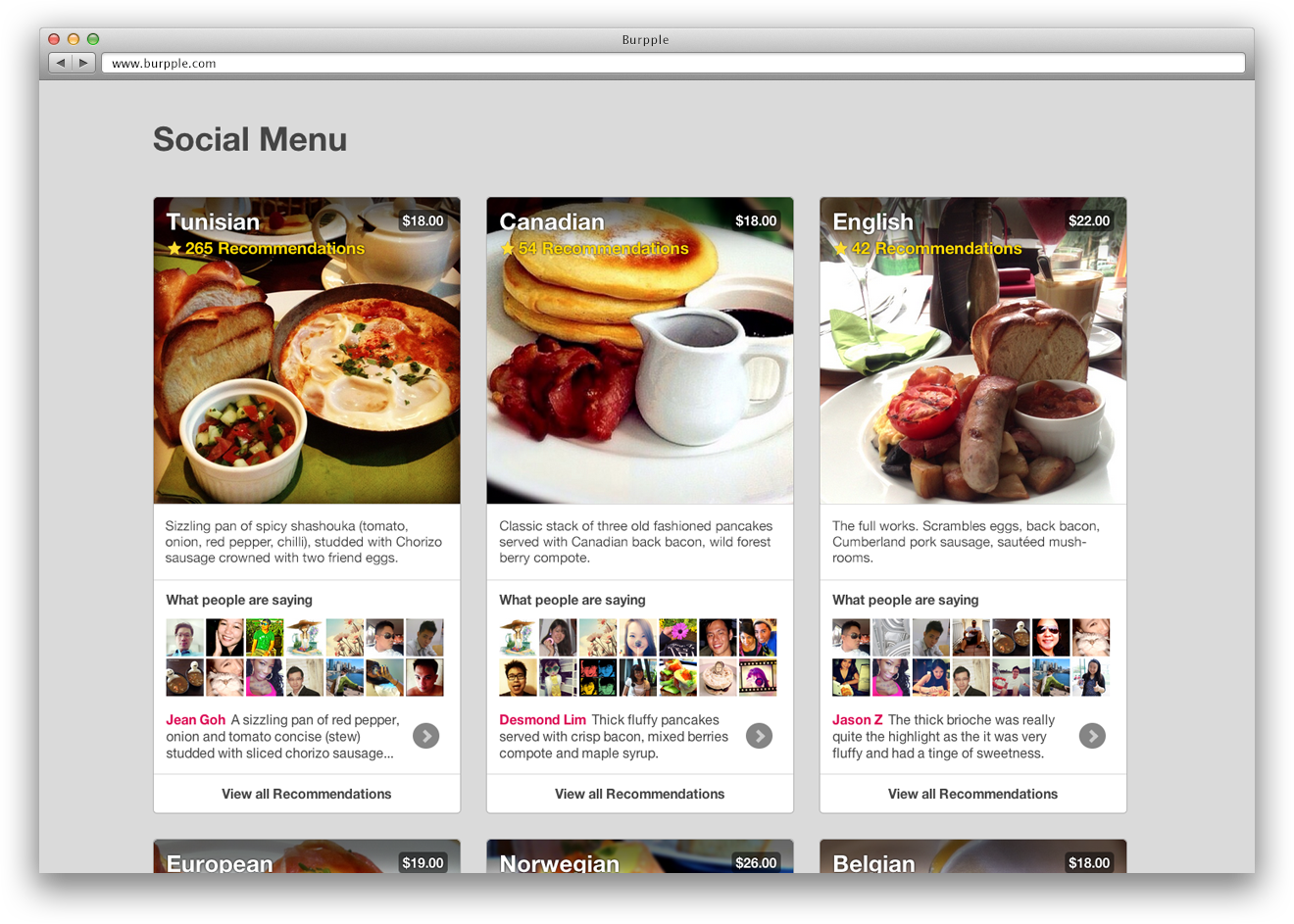 With over half a million rich photo reviews posted in less than a year, Burpple has five times the number of reviews of the incumbent food network in Singapore. This makes Burpple the richest food network in Singapore. Over the past few months, Burpple has also garnered more than 200,000 photo reviews in Philippines, Indonesia and Malaysia, and expects to launch its Social Food Guide in these countries in the third quarter of 2013.