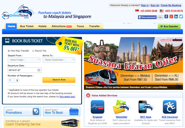 Busonlineticket.com is a popular One Stop Online Bus Tickets Booking Portal that has been helping folks travelling between Singapore and Malaysia as well as within Malaysia get their tickets. Consolidating the service from several express bus companies, they are able to provide coach services running 24/7 numerous routes between and within the two countries. Besides the web portal, they also have a mobile app that is supported on android devices. It allows you to book your tickets while on the go!