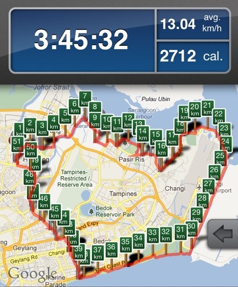 Being a food lover, maintaining my weight and avoid getting fat is a constant challenge. To burn off my entire week worth of indulgence, I take to the wheels and explore the scenic Park Connectors Network (PCN) around Singapore over the weekends. Cycling is great for the waistline and it is a lot more fun than running. I get to burn off lots of calories during the ride and my metabolism is raised even after the ride is over. Furthermore, cycling is associated with improved cardiovascular fitness, as well as a decrease in the risk of coronary heart disease. To prove that I walk the talk, here’s the report card on my Eastern Coastal Park Connector Network Trip. Check out the calories burned!