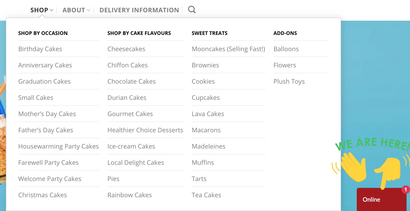 To help you navigate their wide range of cakes, everything has been neatly classified by occasion, flavours, sweet treats as well as add-ons. If you are exploring a little surprise for someone special, the add-on portion will have everything covered!