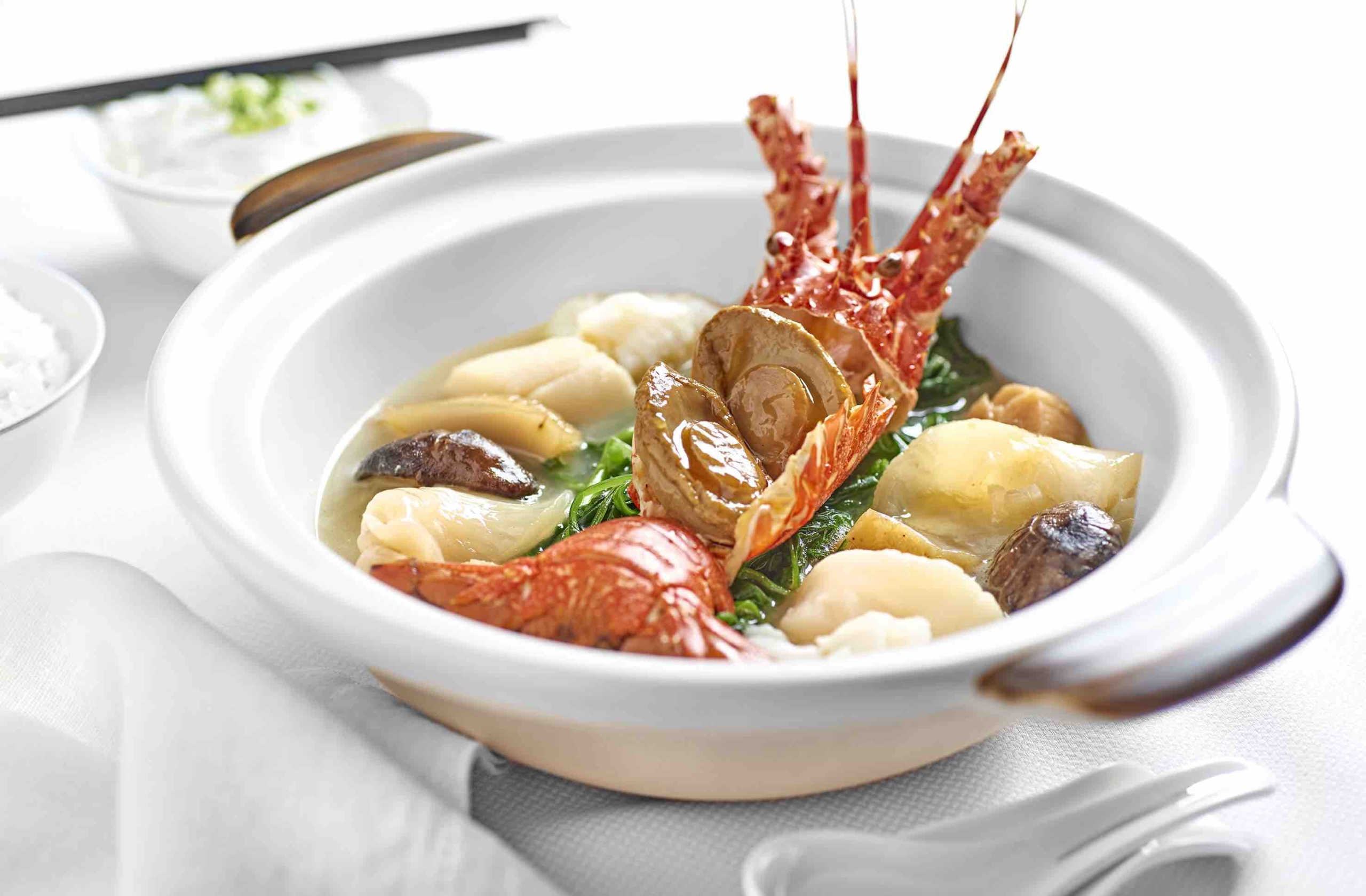 Available for lunch and dinner, the À La Carte Summer Menu features a tasteful selection of delightful appetisers, speciality soups, live seafood, meat and vegetable dishes. Diners can begin their meal with the heart-warming Double-Boiled Rich Chicken Broth with Lobster Medallion Scallop, Bamboo Pith and Shredded Yam, an ode to the Cantonese tradition of double boiling for maximum extraction of flavour and nutrients. Seafood is once again placed in the spotlight with dishes such as the Wok-Fried Prawn with Glass Noodle and Sacha Sauce in Claypot and the Wok-Fried Scallop and with Pine Nut with Thai Kailan in XO Chili Sauce. Vegetarian options include Braised Homemade Tofu with Bai Ling Mushroom and Black Truffle.