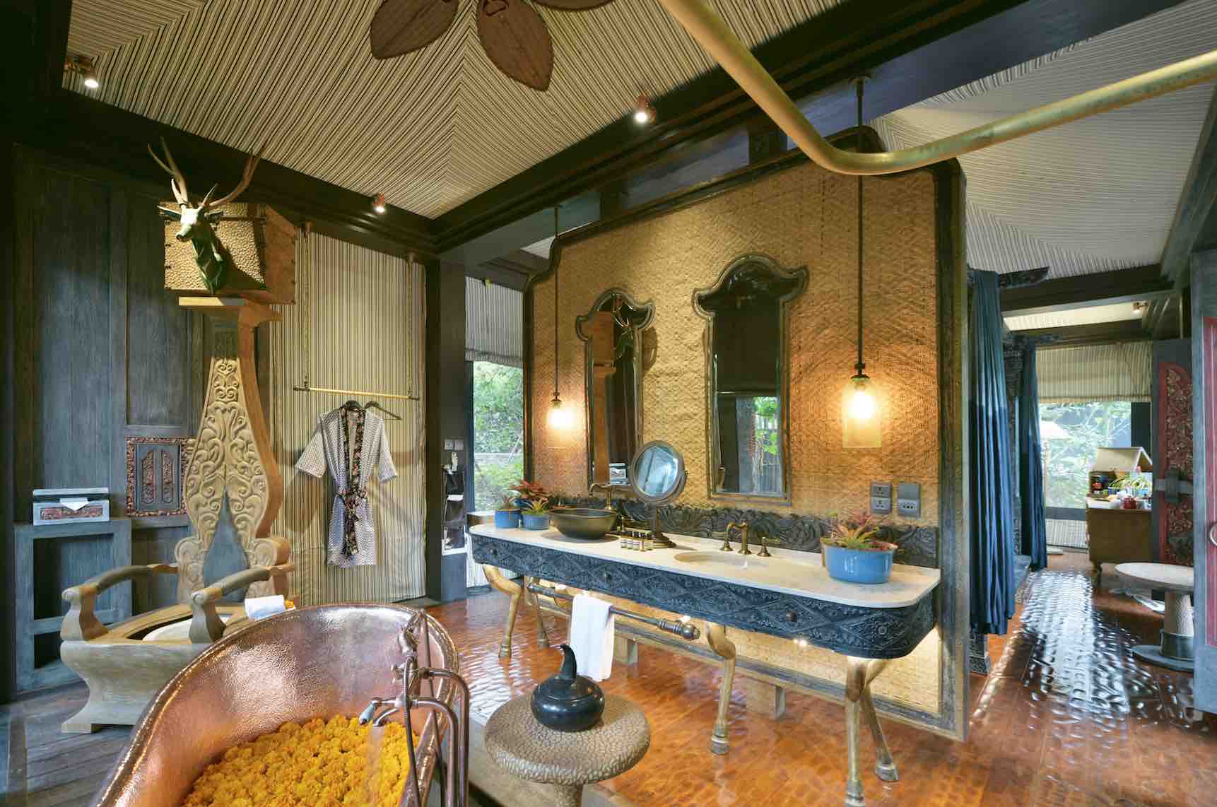 An exclusive line of 100% natural bathroom amenities paired with a soap menu featuring a diverse choice of handmade organic soaps that are influenced by the indigenous flora and fauna of the campsite complete your personal grooming rituals. Handpicked antique furniture and artifacts, wooden carved doors, Balinese Poleng and ikat linen showcase a perfect blend of classic European style and Balinese and Indonesian partisanship.
