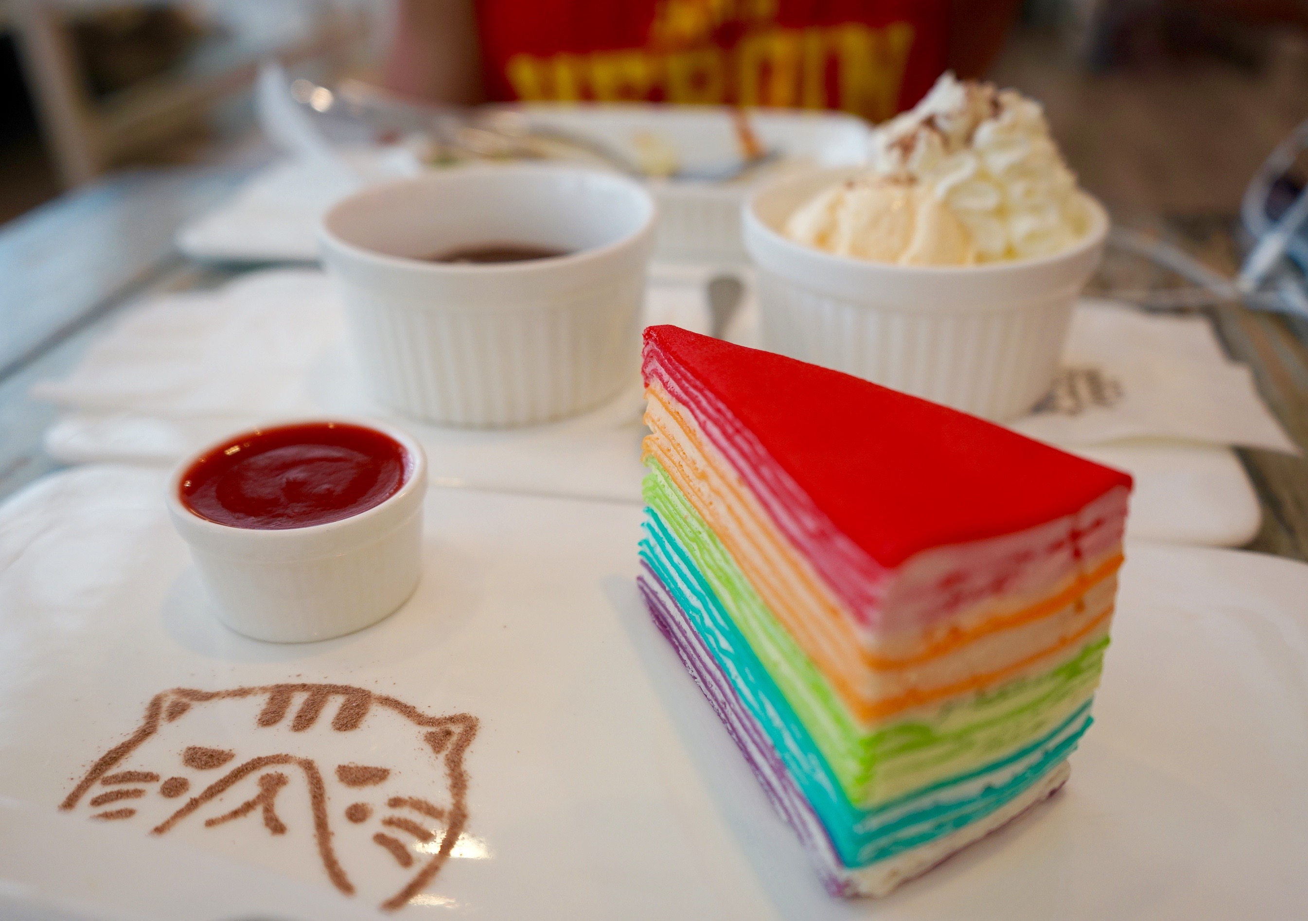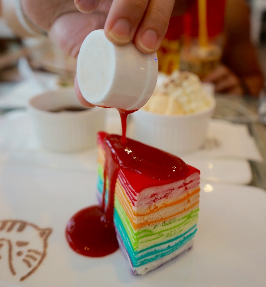 Digging into the sweet coloured layers was pure joy and there is just something sexy about pouring thick rich strawberry sauce over it. I bet the Thai Ice Tea Crepe taste great too. Do order it and share your review in the comments section below.