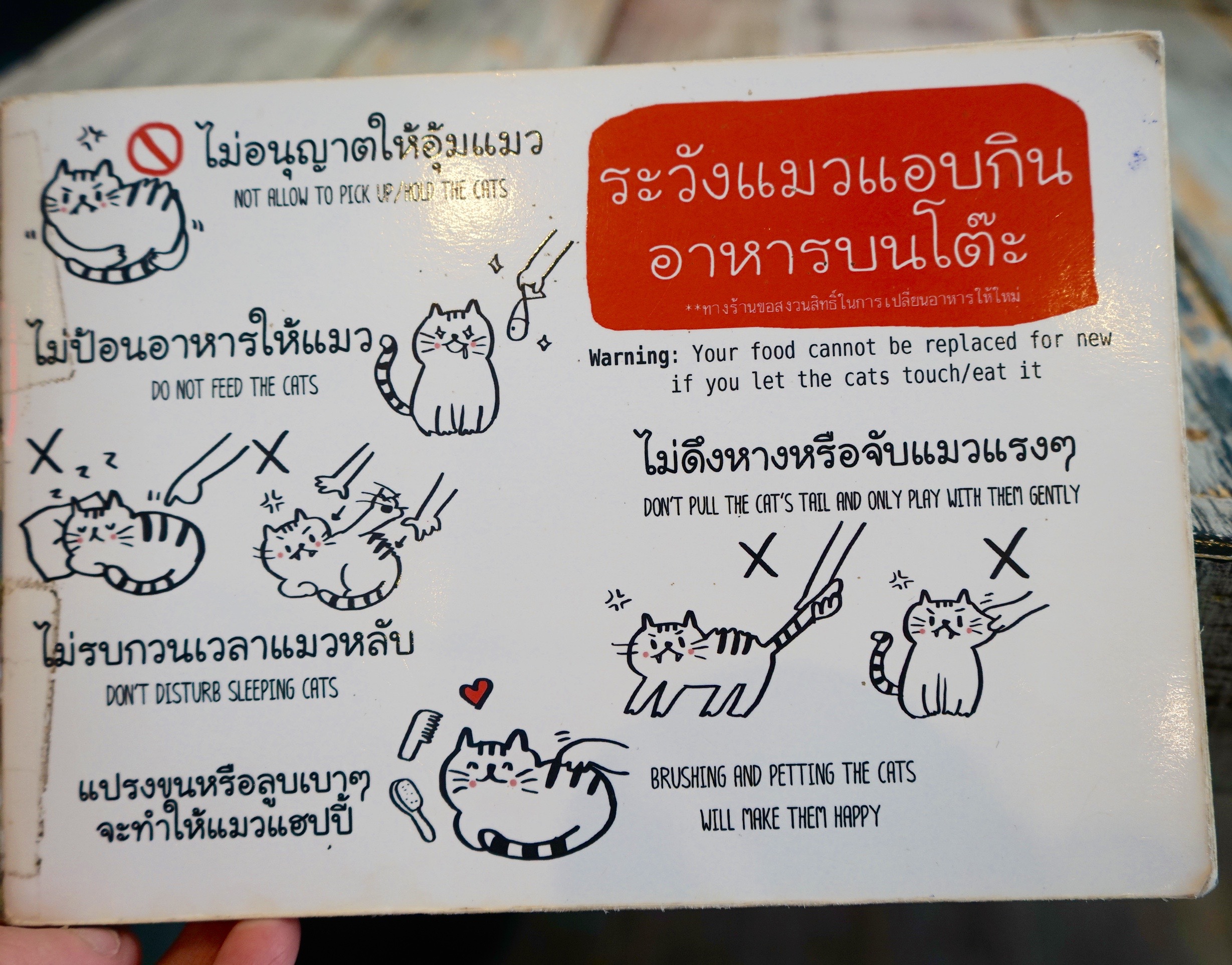 It is interesting that I only got to experience dining at Cats Cafe in Bangkok when there are quite a number of pets cafes in Singapore. Caturday Cat Cafe is a highly raved cat cafe in Bangkok that’s conveniently located at Cocowalk, right next to Ratchathewi BTS. Just head down the stairs from Exit 2 and turn into the alley of Guts Restaurant and you should be able to find it. Other than the huge cat mascot, there are also some wandering cats at its entrance!