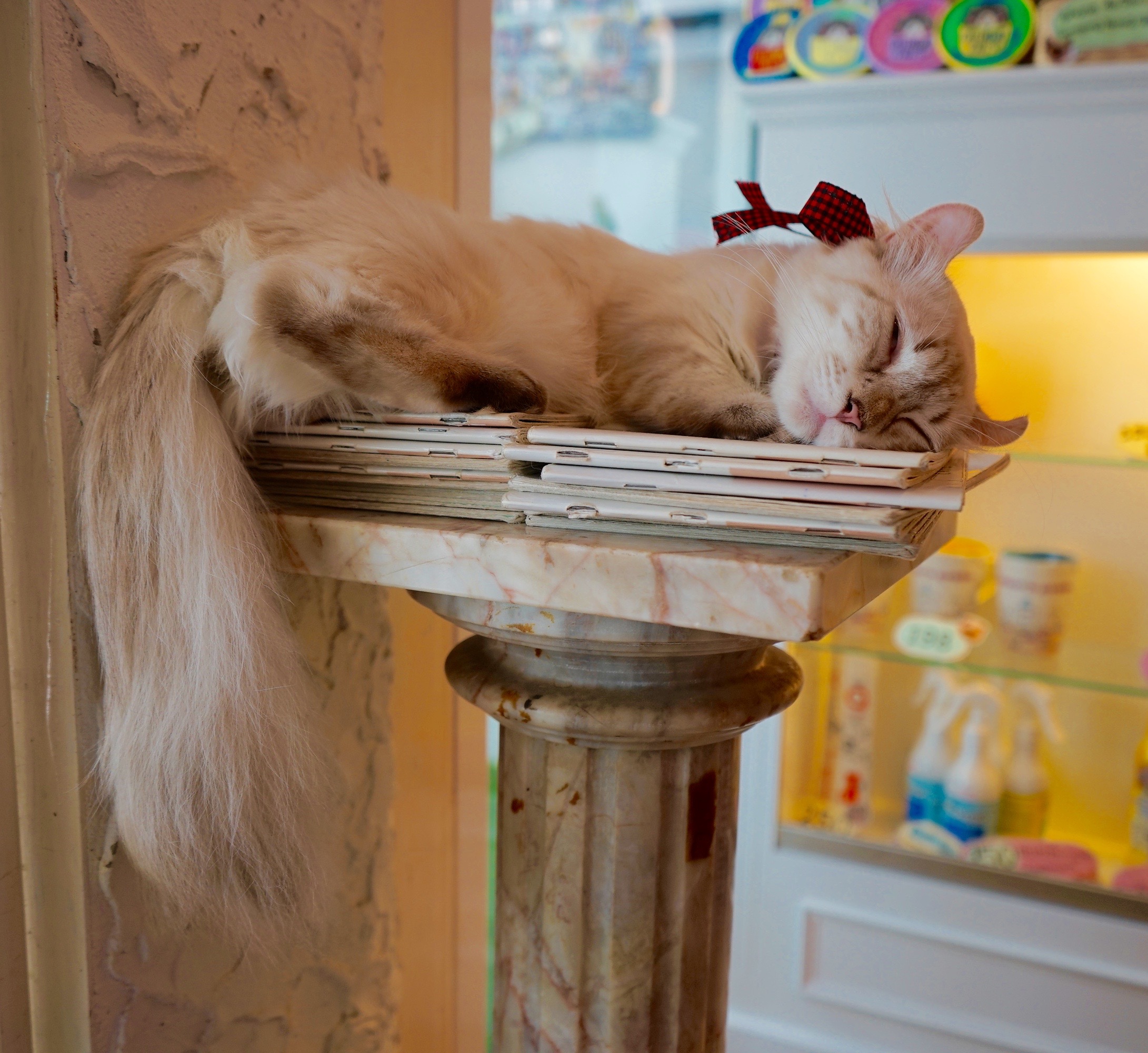 Gorgeous cats are everywhere. Aww… we couldn’t bear to wake her up for our menus….