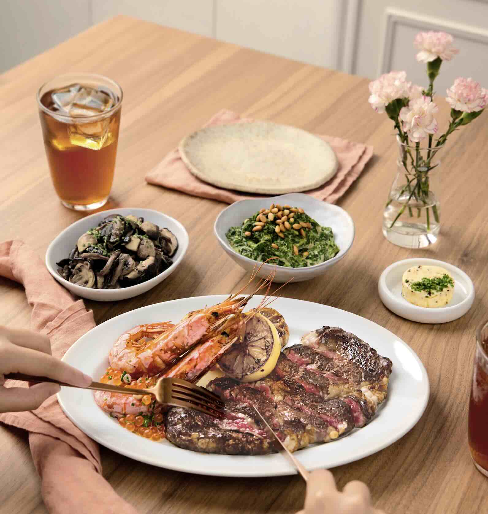For mums who appreciate a bold, indulgent meal, Fat Belly (FBG) presents an irresistible pairing: 44 Farms USDA Prime Ribeye and Argentinean Red Prawn ($168++). The 350g ribeye, known for its rich, buttery profile, is expertly grilled to perfection and complemented by the sweet brininess of Argentinean Red Prawns. This hearty surf-and-turf experience is completed with comforting Mushroom Fricassée and Creamed Spinach — a luxurious meal for two to savour together.