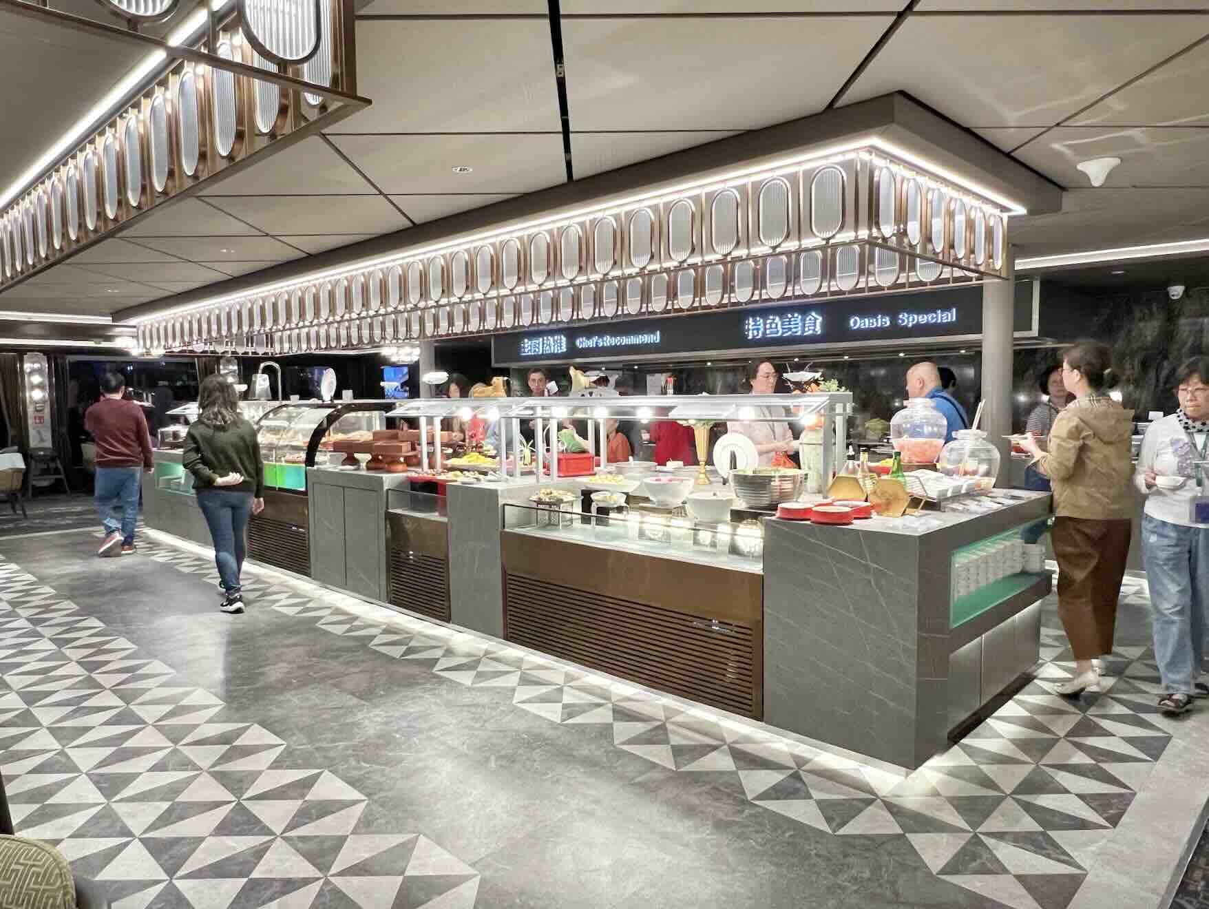 We chose to upgrade to VIP dining, which provided access to a private dining area conveniently located on the same floor as our cabin—a thoughtful perk that made mealtimes especially easy for my mom. The VIP dining room featured an elevated menu, live cooking stations where you could customise your orders, and a more intimate setting. Watching chefs prepare dishes to your preferences added an interactive and personalised touch to the experience.