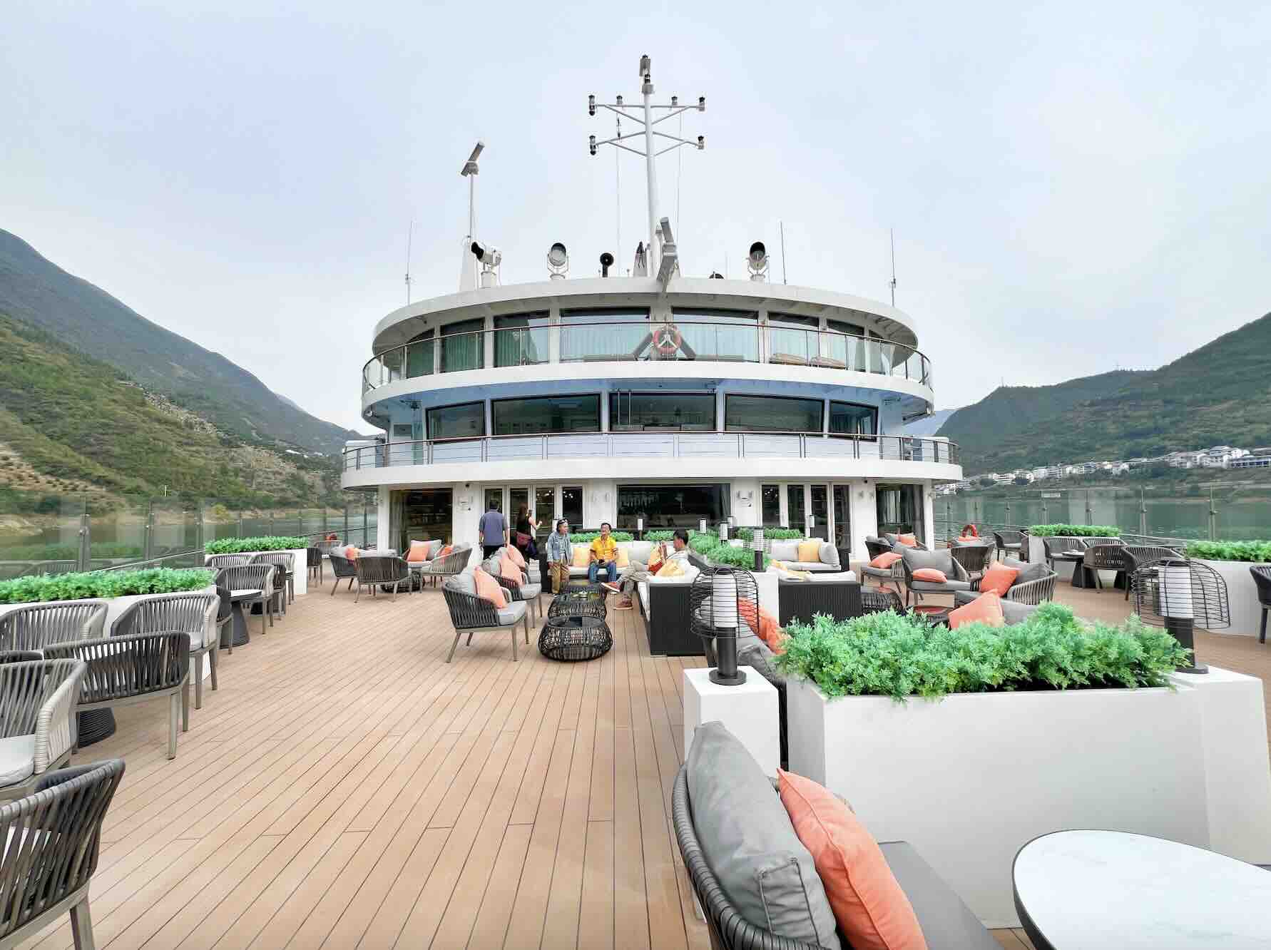 One of the most memorable moments onboard was the narrated tour from the Sky Deck as the ship glided through the breathtaking Three Gorges. With a cool breeze and unobstructed panoramic views, we marvelled at the towering cliffs of Qutang Gorge, the narrowest and most dramatic of the gorges, with its steep walls rising high above the river.