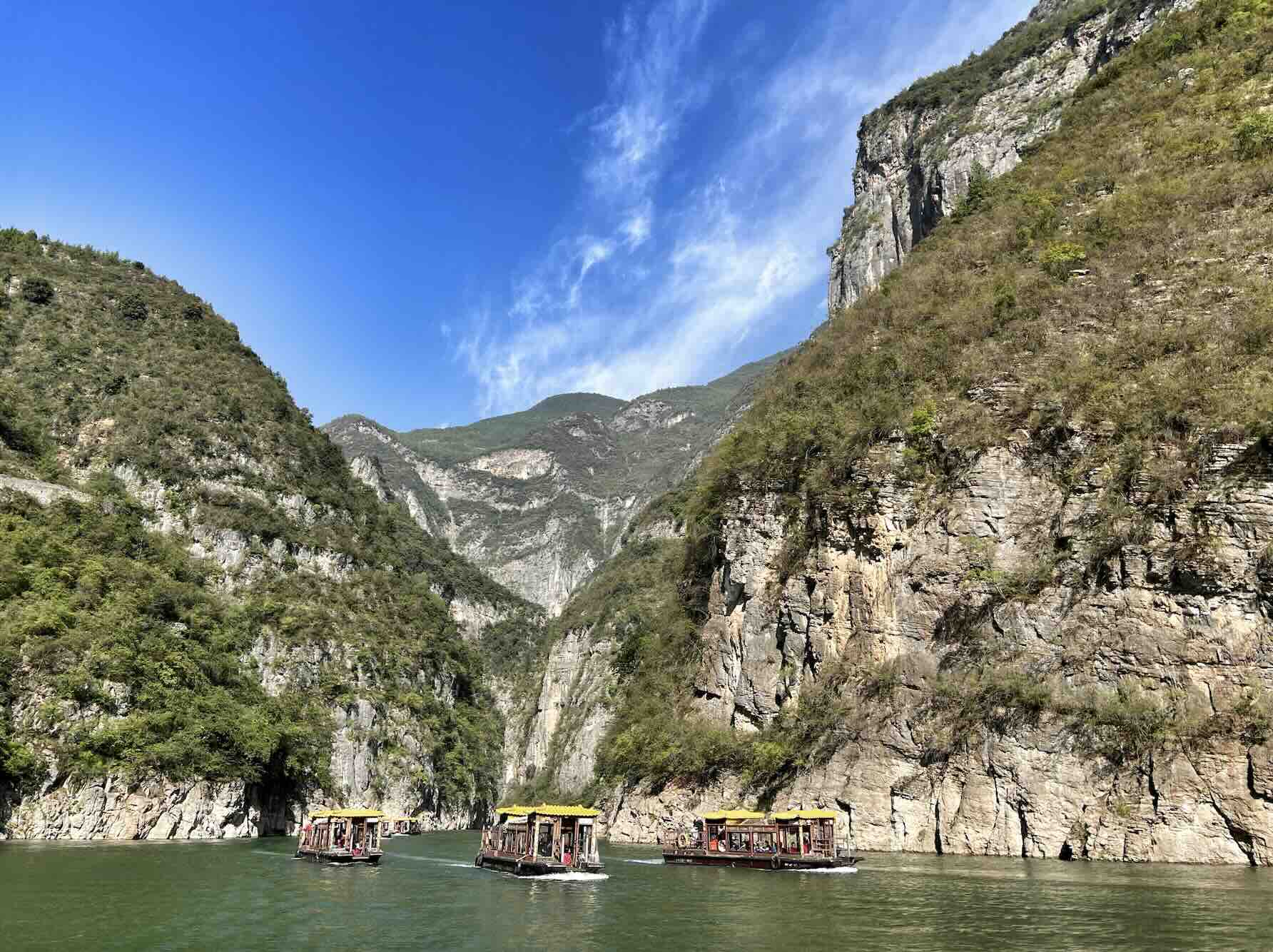 As we sailed into the tranquil Wu Gorge, renowned for its ethereal mists and verdant peaks, the guide shared fascinating tales of the legendary Twelve Peaks of Wu, including the famous Goddess Peak. The final stretch, the expansive Xiling Gorge, showcased a stunning interplay of rugged cliffs and serene waters.