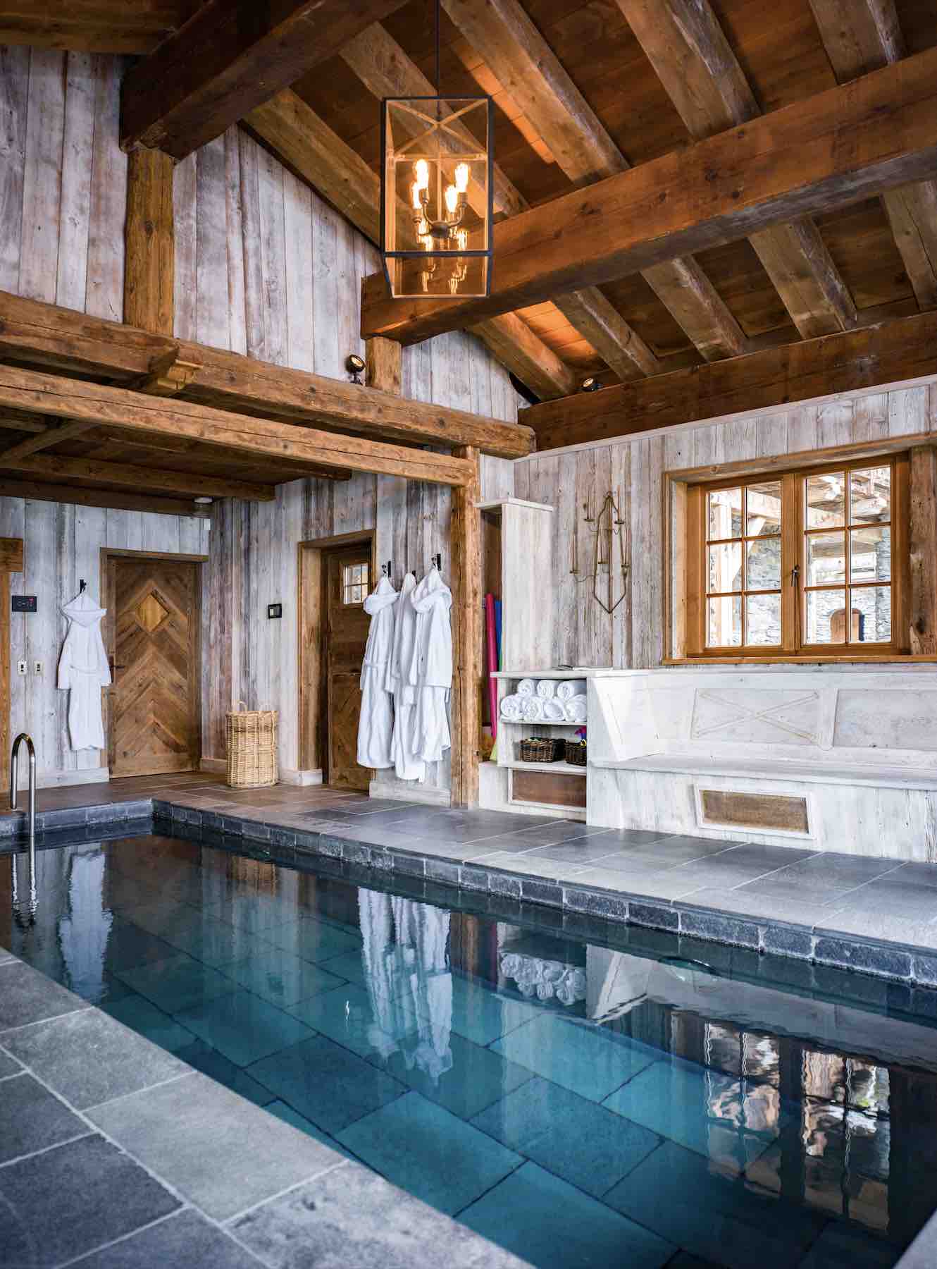 Chalet Hibou and Chalet Pelerin, sleeping 16 and 12 respectively, sit opposite each other and can easily be twinned to create one large space for bigger groups to enjoy as one whole. Whilst Chalet Pelerin boasts an indoor pool area and Chalet Hibou a fully equipped gym, both chalets have media rooms, an outdoor hot tub, Finnish sauna and steam room.