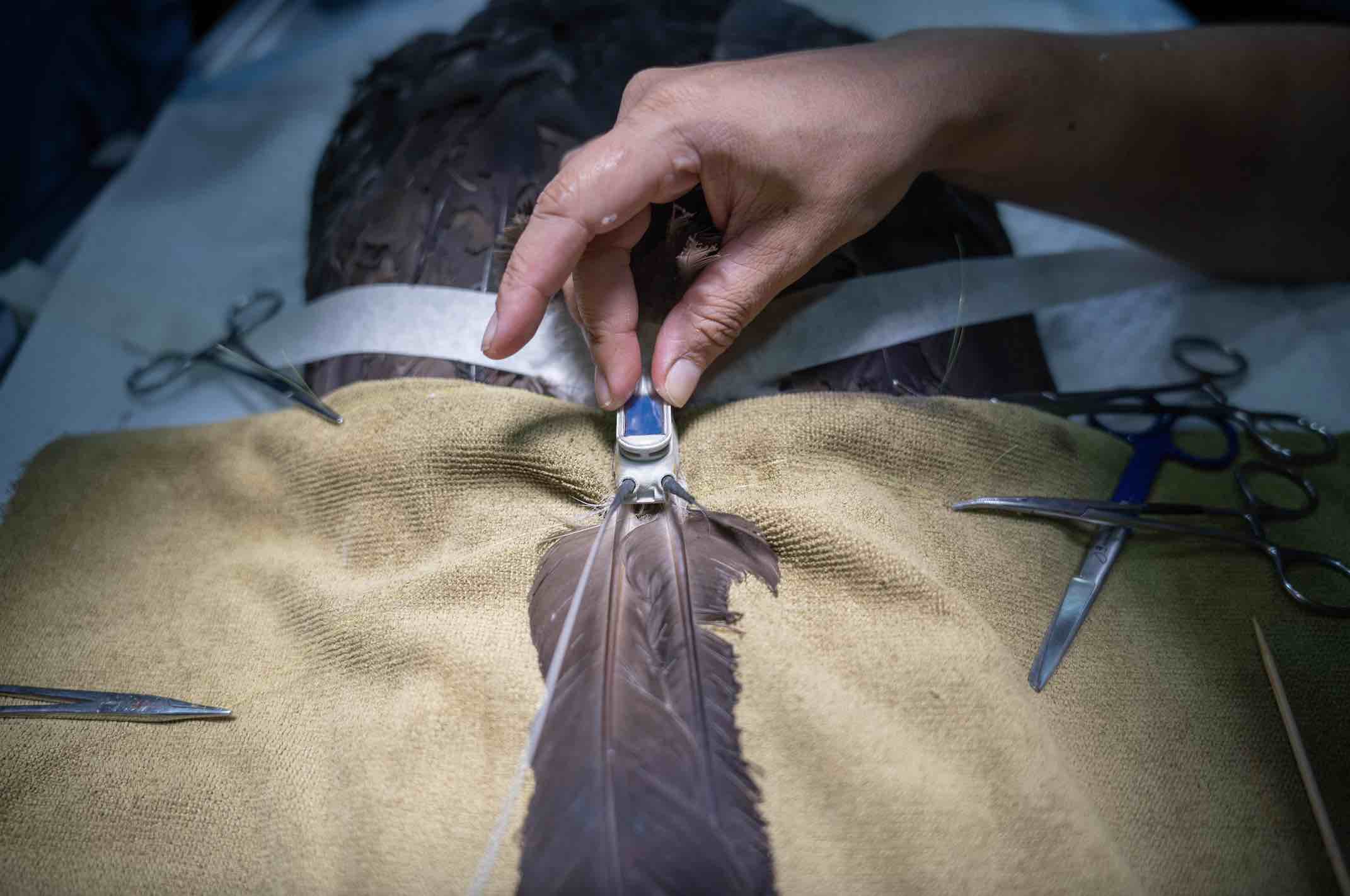 The patient’s feathers were successfully imped on the afternoon of 20 January 2022 after receiving suitable donor wings. The painstaking process involved replacing over 50 feathers on the bird’s wings and tail using bamboo chopsticks as imping needles to affix the new feathers.