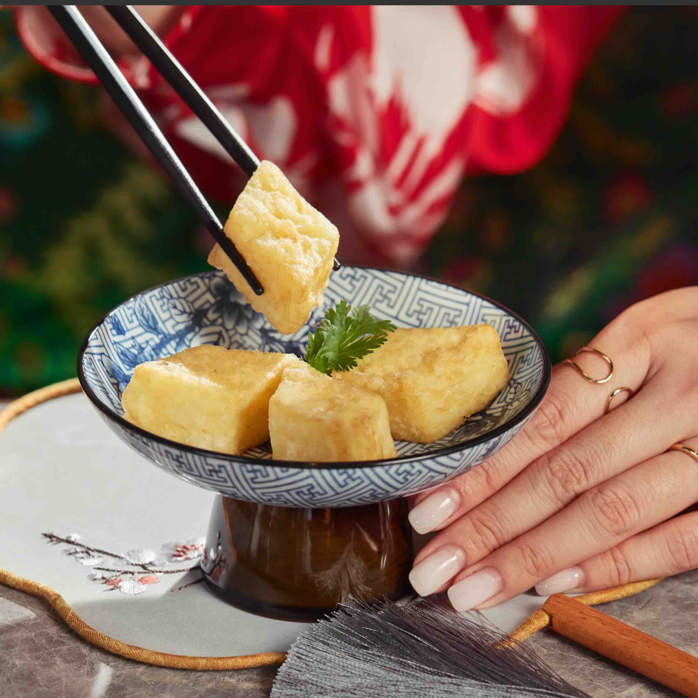 The Weekend Brunch dim-sum menu also showcases a sensational rendition of Egg Yolk Corn Starch Pudding, a crisp-fried, diamond-shaped delight with a collagen-filled soup centre. This exquisite dish, once a humble street food in Beijing, rose to prominence during the Qing Dynasty court and subsequently became a beloved staple in ’50s-’60s Hong Kong dim-sum establishments. Chef Chau masterfully melds savoury flavours by simmering aged chicken and Yunnan Jinhua ham to create a rich broth, which is then combined with egg and encased in a golden batter. The result is a tantalising interplay of crispy, soft and liquid textures – a culinary marvel that Chef Chau modestly calls ‘bite-sized soup’.