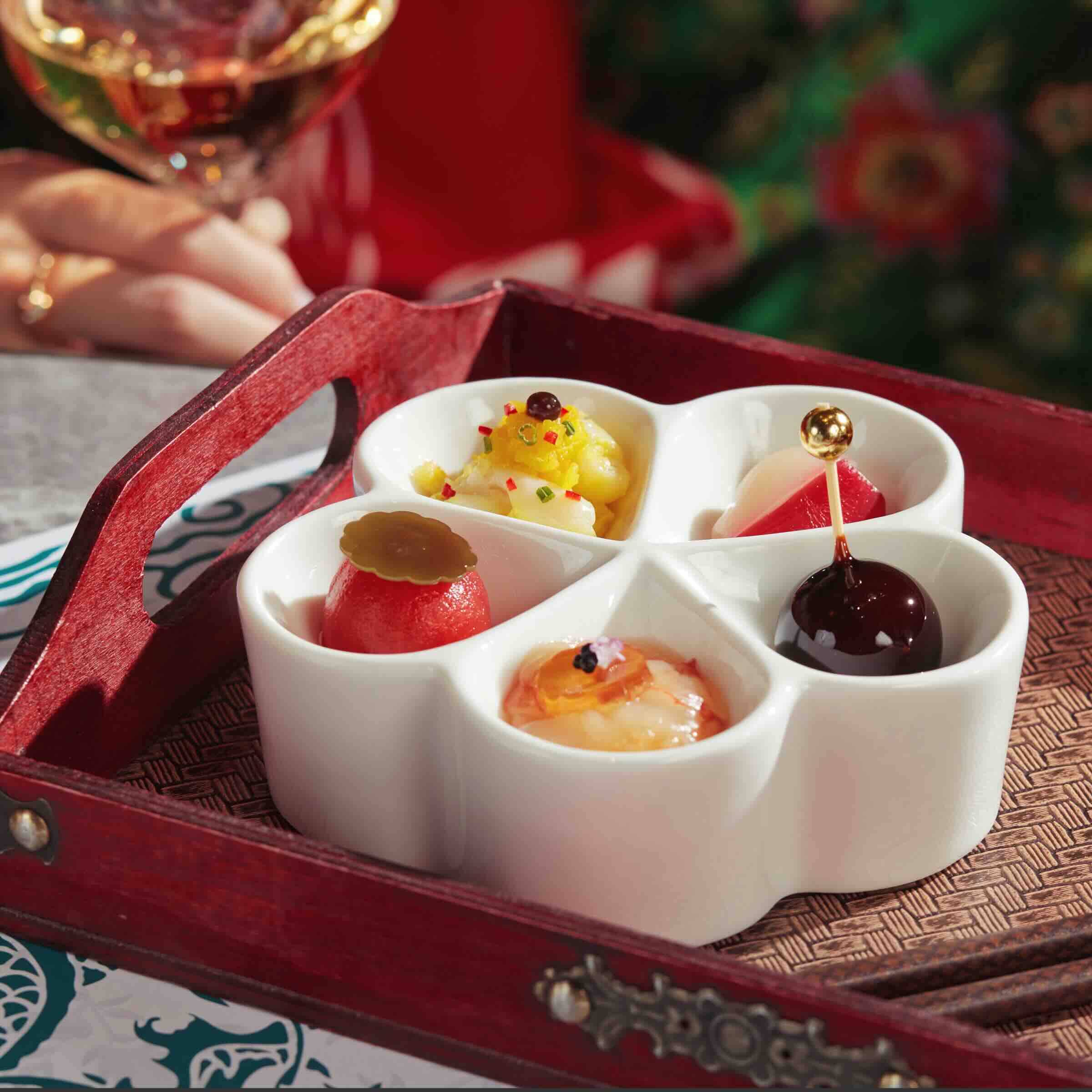 Three cocktails from the mixology team’s extraordinary collection fusing Chinese tradition with Western techniques are featured. Bamboo Punch(original price HK$128, right) stars Shanxi’s bamboo leaf-infused Chu Yeh Ching Chiew stirred with homemade five-spice cordial and sparkling wine. The West-East vibe continues with Southern Sidecar (original price HK$108), which blends VSOP Cognac with kumquat liqueur and ginger spice. The Florist, featuring Widges London dry gin, homemade jasmine and floral tea syrup topped up with tonic water, is exclusively served at the Weekend Brunch.
