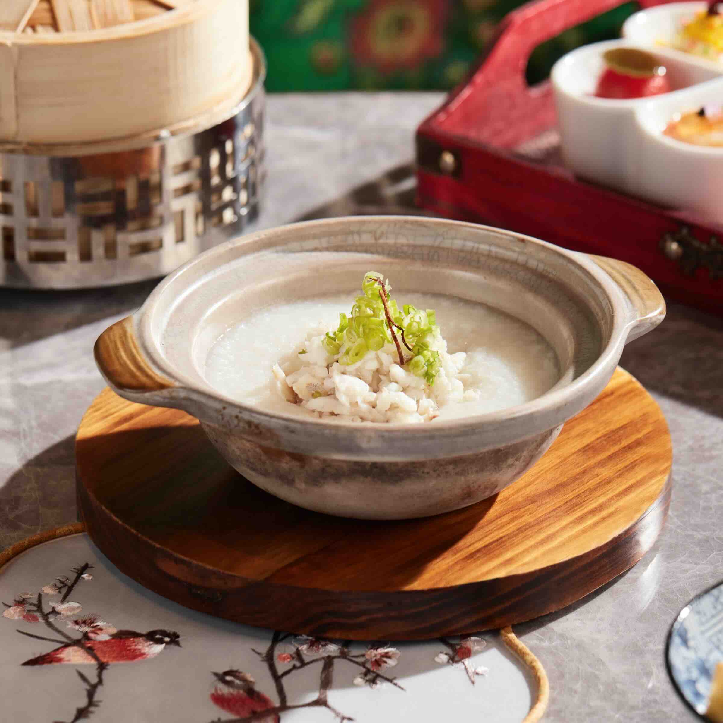 Known for its heart-warming qualities, congee plays an essential part in Hong Kong culinary culture. Chef Chau’s Wild-caught Mottled Spinefoot and 15-year-old Tangerine Congee delivers a delightful oceanic aroma without any overpowering fishy taste. He elevates the flavour profile by infusing the fragrant essence of aged peel from his personal collection. Top-quality tangerine peel, valued for its health benefits, is in limited supply, making it a prized ingredient.