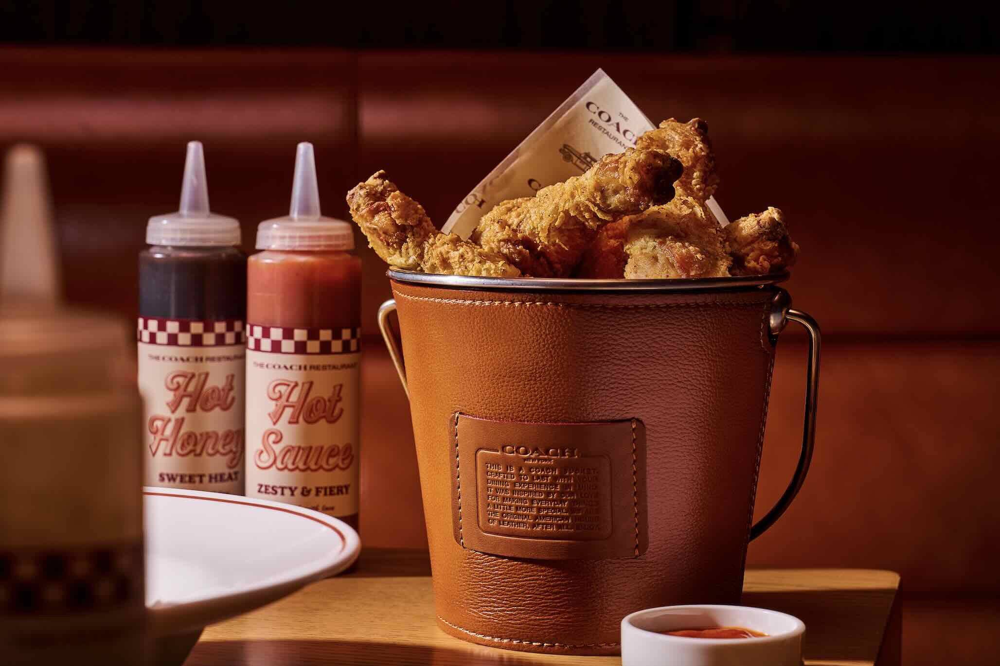 Every element, from the glovetanned leather placemats to the Coach ‘C’ butter pats, has been designed with intention. Even the plateware references Coach’s fashion collections, blending luxury codes with playful touches that make the space feel intimate, not intimidating.