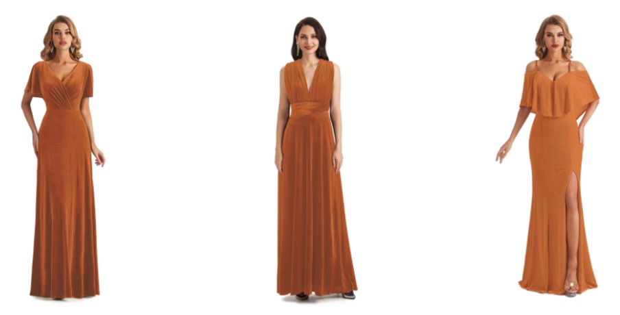 Satin Terracotta and Copper Dresses for Different Wedding Themes