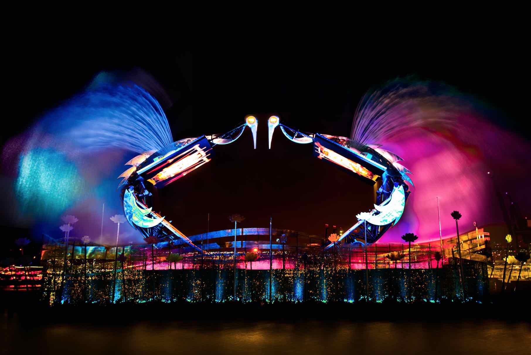 Specially created for RWS by international show maestro and four-time Emmy Award winner Jeremy Railton, the Crane Dance premiered on Christmas Day, 25 December 2010 and tells a magical and touching story about a pair of mechanical cranes and how their love for each other transforms them from inanimate forms into real birds. At 10 storeys high, the Crane Dance is one of the world’s largest dancing animatronics show extravaganza and a visually-stunning waterfront performance at RWS, featuring digital art, LED displays, astounding light and water effects, pyrotechnics as well as an original score that beautifully narrates the crane’s graceful courtship ritual.